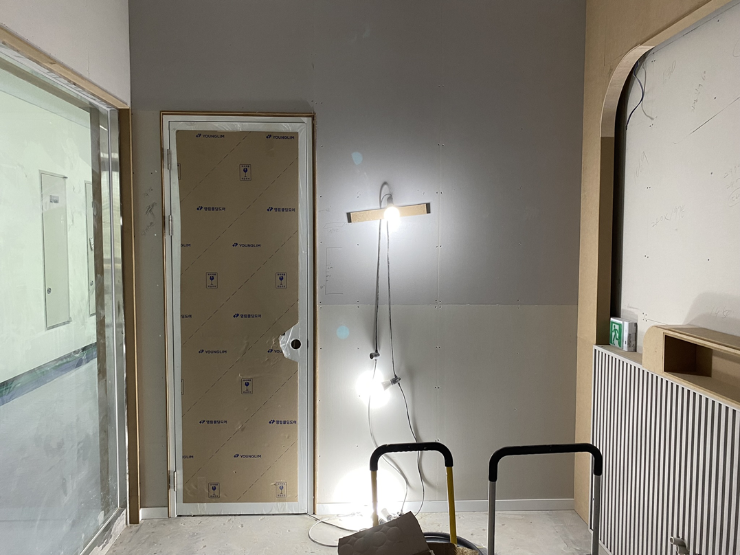 소음이 외부로 새어나가지 않도록 벽면과 천장에 방음재를 시공하고,