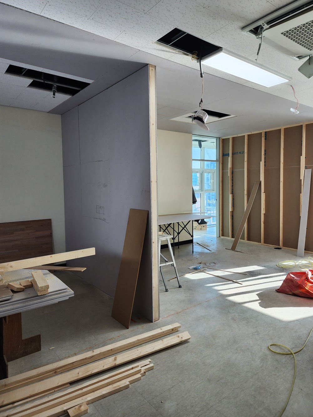 주요 업무 공간은 칸막이 설치, 데스크 배치, 전기 및 네트워크 선로 연결까지 세밀하게 진행했어요.