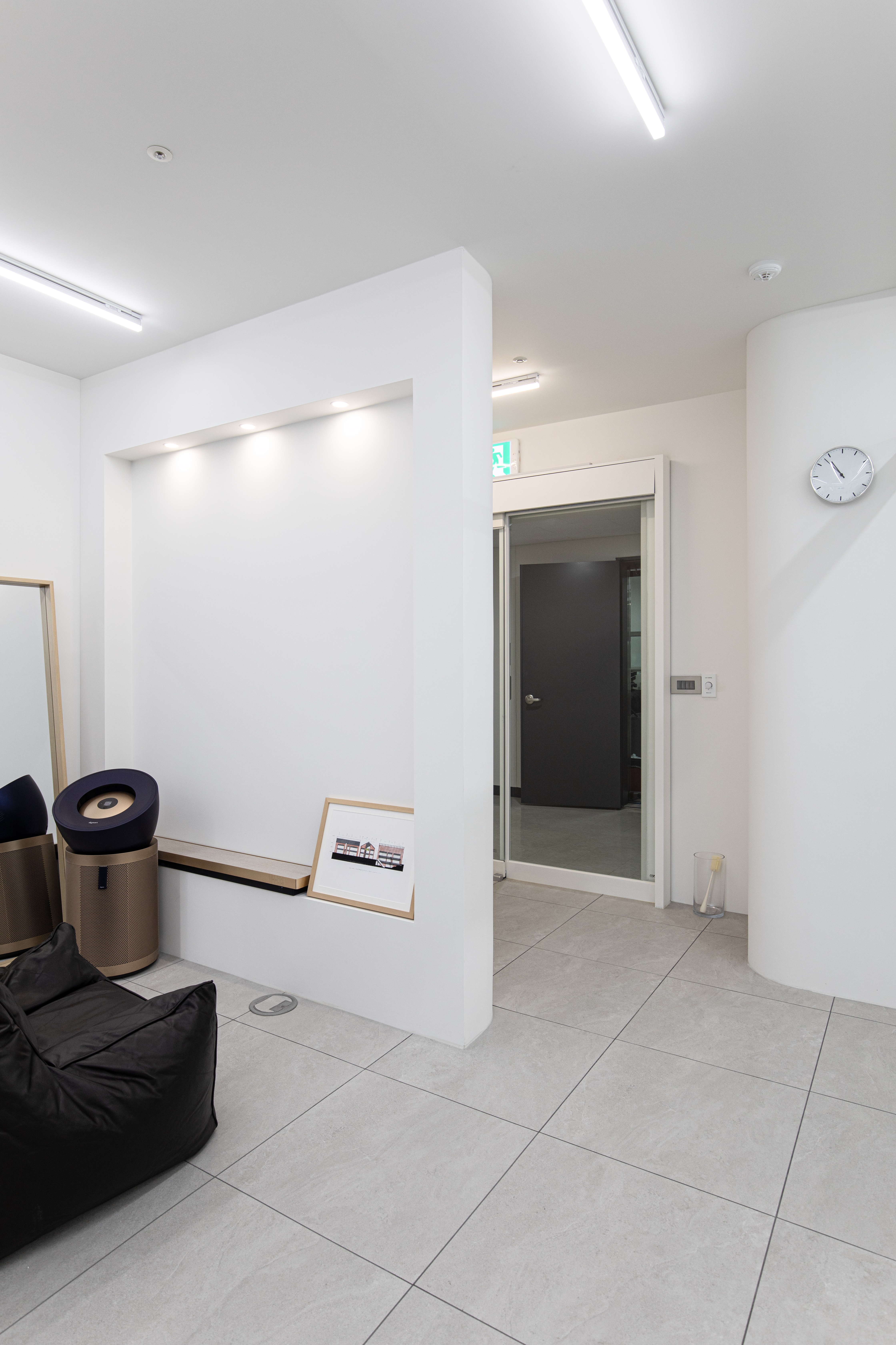 입구와 복도는 내구성이 뛰어난 유광 타일로 시공해 청결함과 전문성을 강조했고 벽면과 천장은 디자인 시안과 동일한 화이트 톤으로 마감했답니다.
