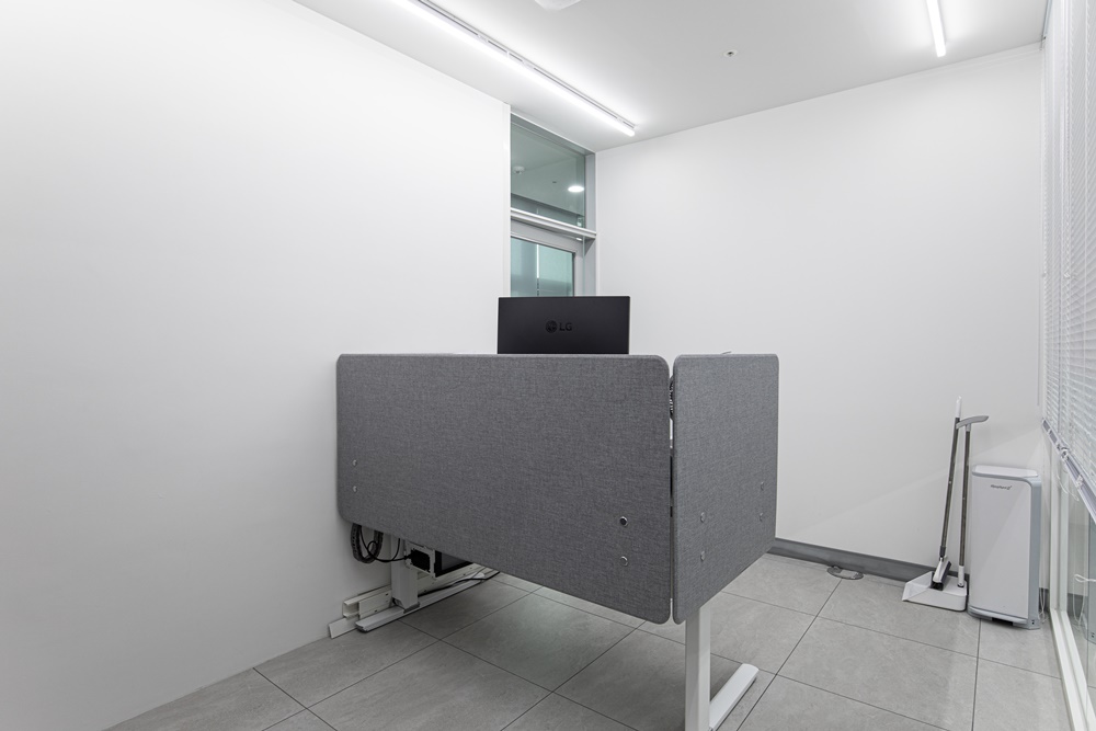 인체공학적 책상과 의자, 정돈된 선반 덕분에 집중력과 업무 효율이 높아지고 블라인드 조절을 통해 개인 맞춤형 환경을 만들 수 있답니다.