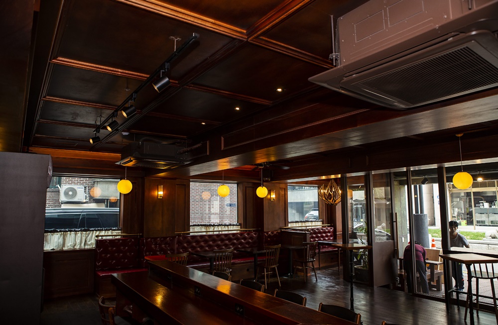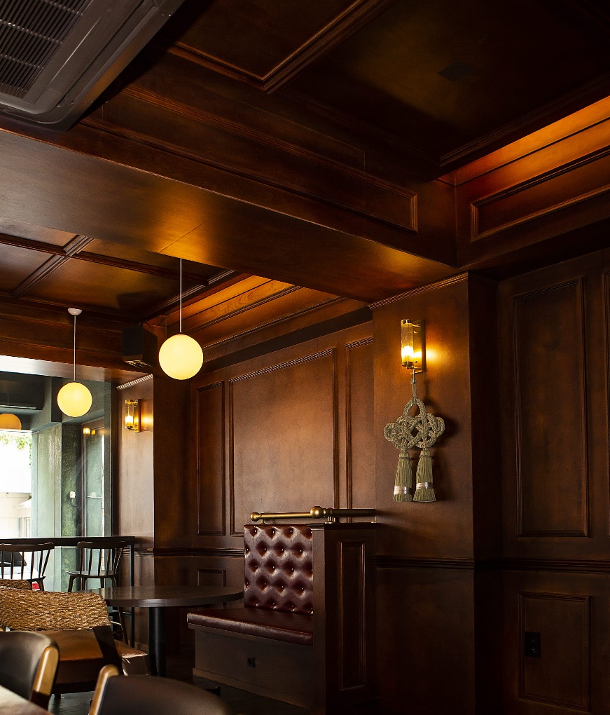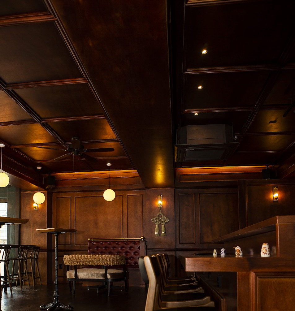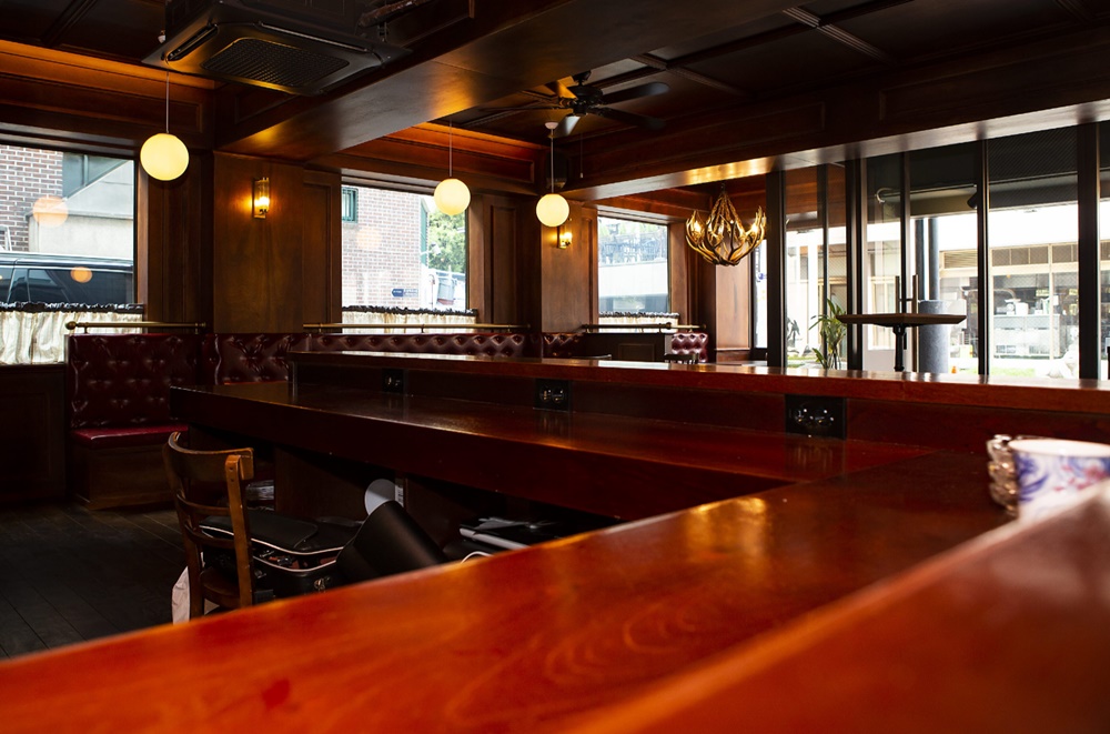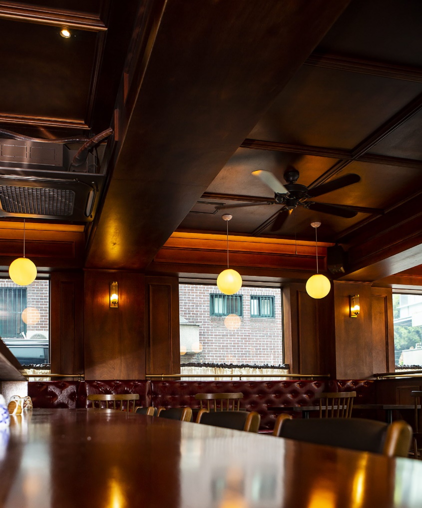 전통적인 무드가 자연스럽게 살아나기 위해서는 톤의 깊이가 매우 중요한데 이번 시공사례에서는 다크 브라운 컬러의 원목 계열을 선택해 술집 스타일링에 안정감을 부여했답니다.