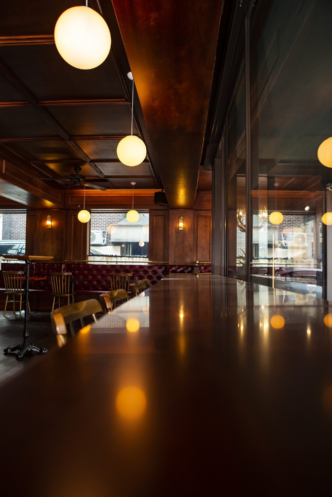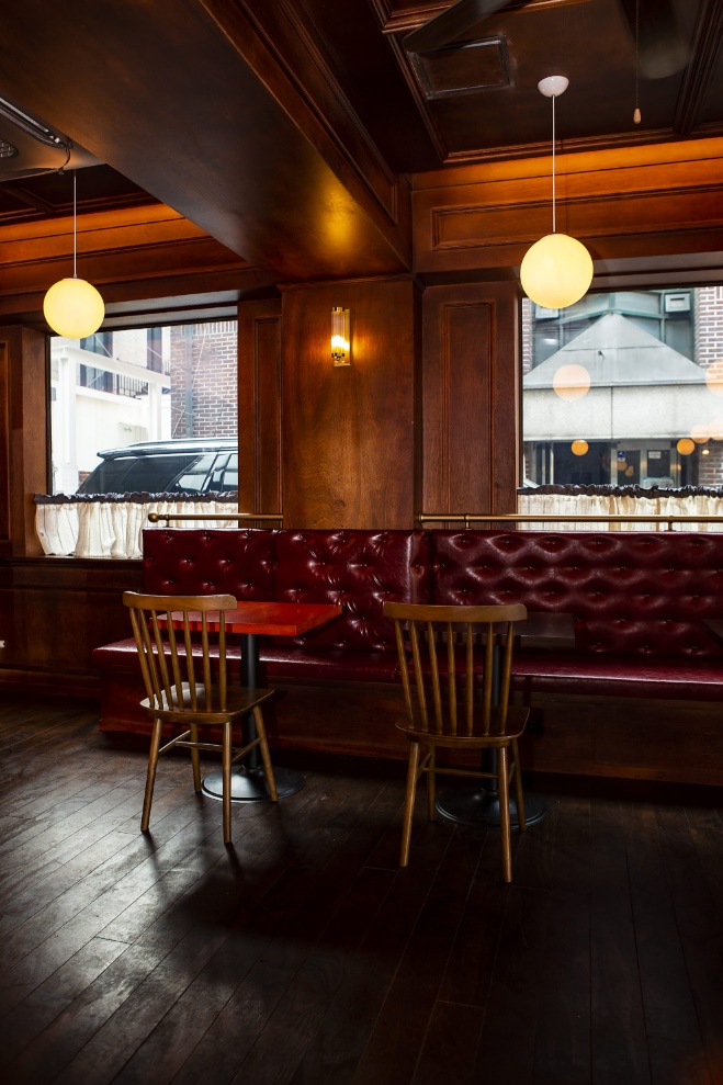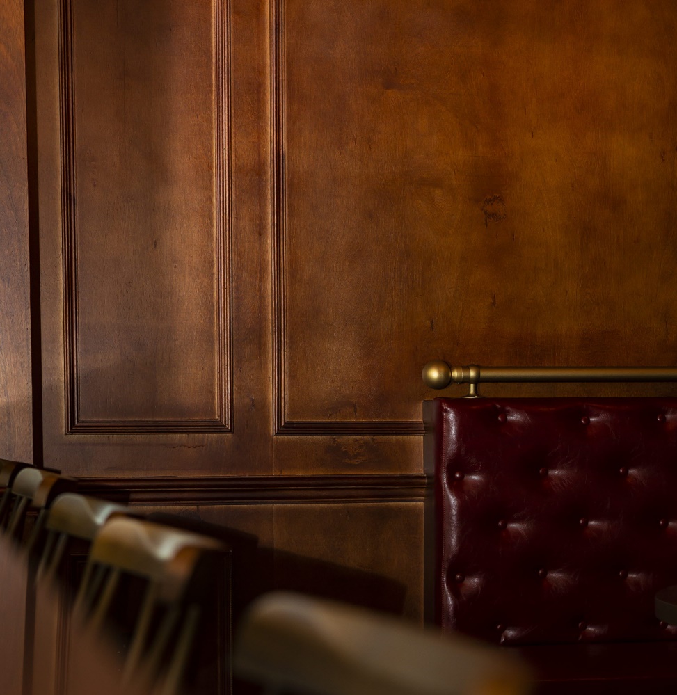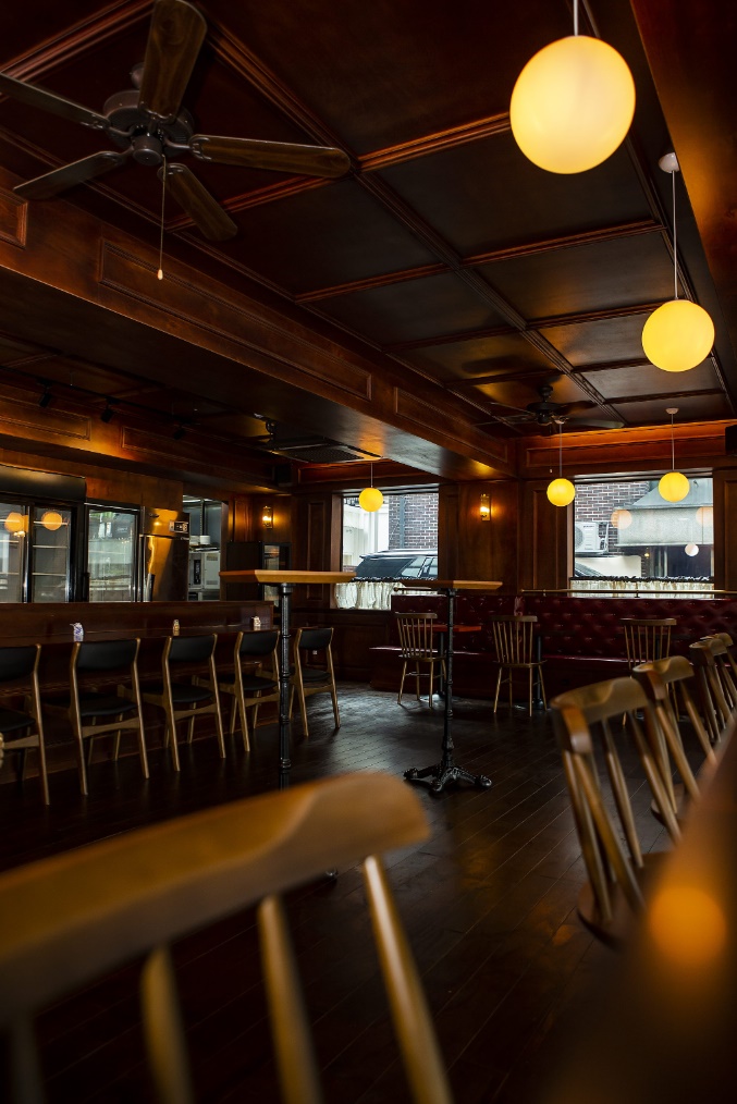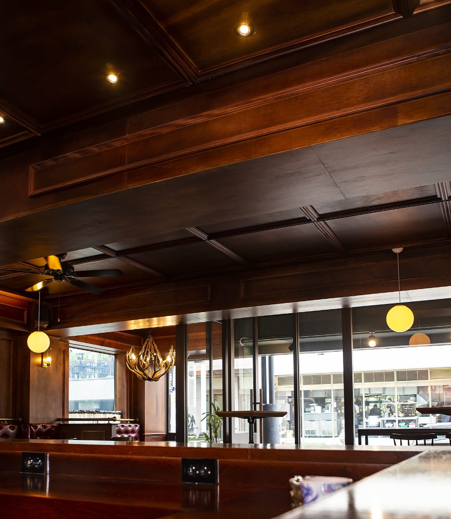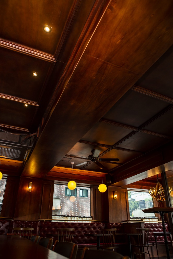 전통적인 무드가 자연스럽게 살아나기 위해서는 톤의 깊이가 매우 중요한데 이번 시공사례에서는 다크 브라운 컬러의 원목 계열을 선택해 술집 스타일링에 안정감을 부여했답니다.