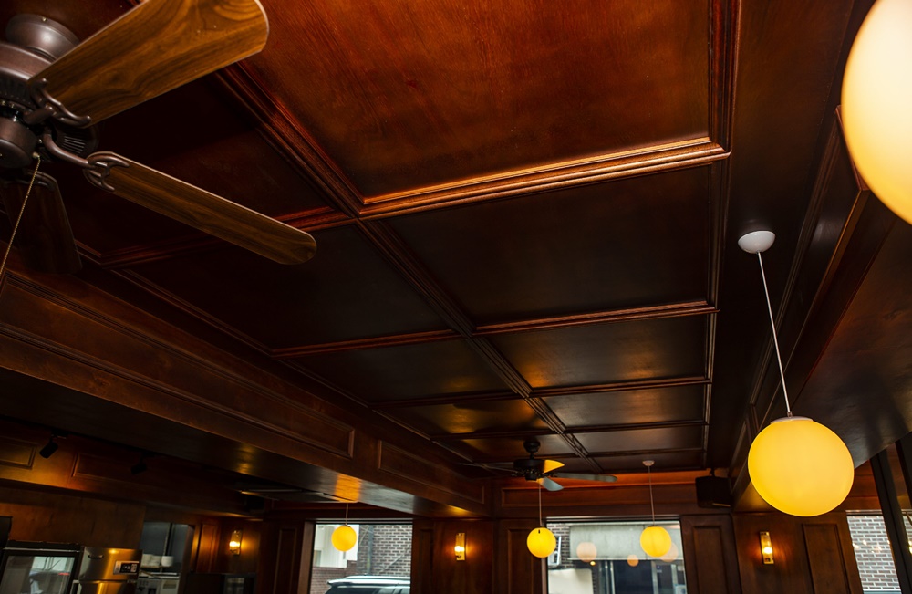 천장 마감은 전통적 무드에 잘 맞는 원목 패널을 적용했어요.