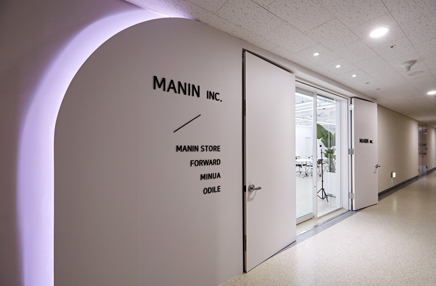 합정 공덕 쇼핑몰 사무실인테리어의 입구모습입니다. 새하얀복도와 비슷한 컬러이기에 자칫 눈에 띄지 않는다고 생각하실 수도 있는데요.