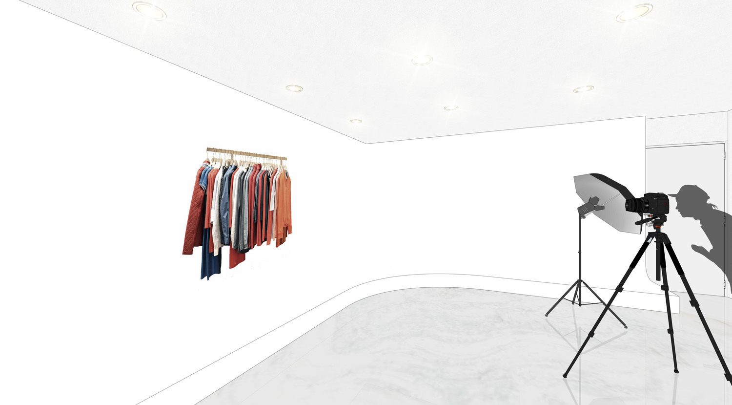 또한 합정 공덕 쇼핑몰 사무실인테리어의 꽃이라고 할 수 있는 자체 스튜디오 공간입니다. 전체 화이트로 되었기때문에 별도의 배경지가 필요없이 바로 촬영이 가능하다고 할 수 있는데요. 햇빛이 따스하게 비추는 낮시간대에는 조명도 필요없을만큼 채광이 좋으며, 채광을 활용하기 위해서 전체 통창으로 진행하였습니다. 또한 천장에는 곳곳에 라인 LED 조명이 밝히고 있어 효율적인 촬영을 돕습니다. 그리고 다채로운 촬영 컨셉을 위해서 곡선으로 마무리지은 벽에서 완성도 높은 촬영이 가능하게끔 도와드렸는데요.