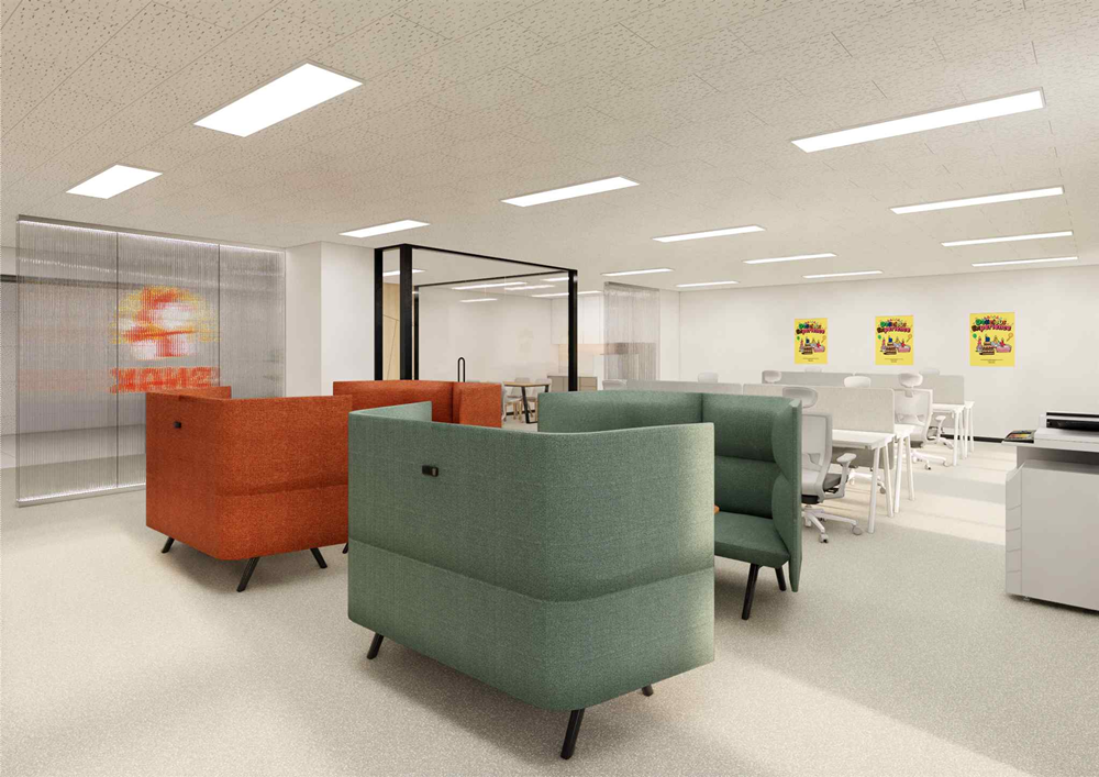 다양한 형태의 회의실, 소통 공간, 그리고 협업 공간을 마련하면