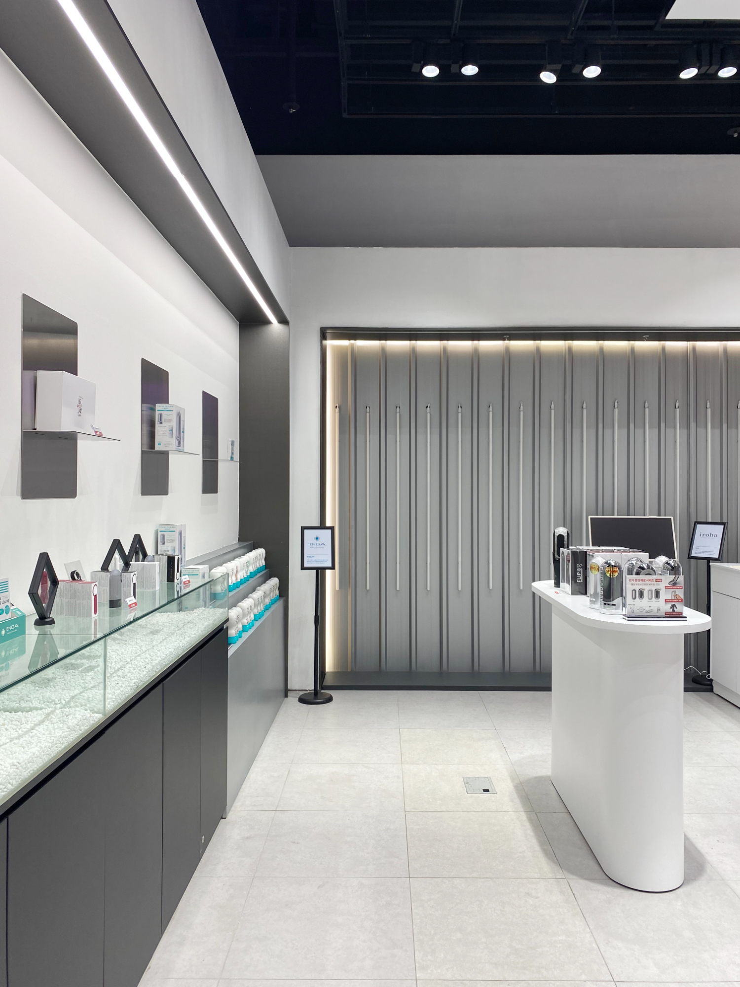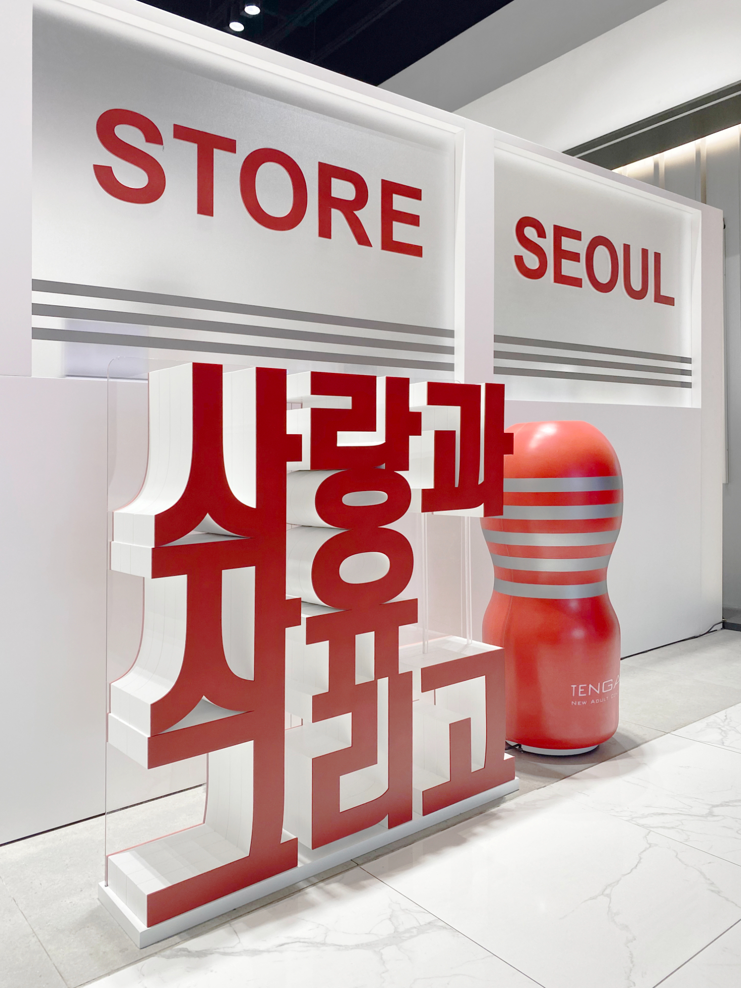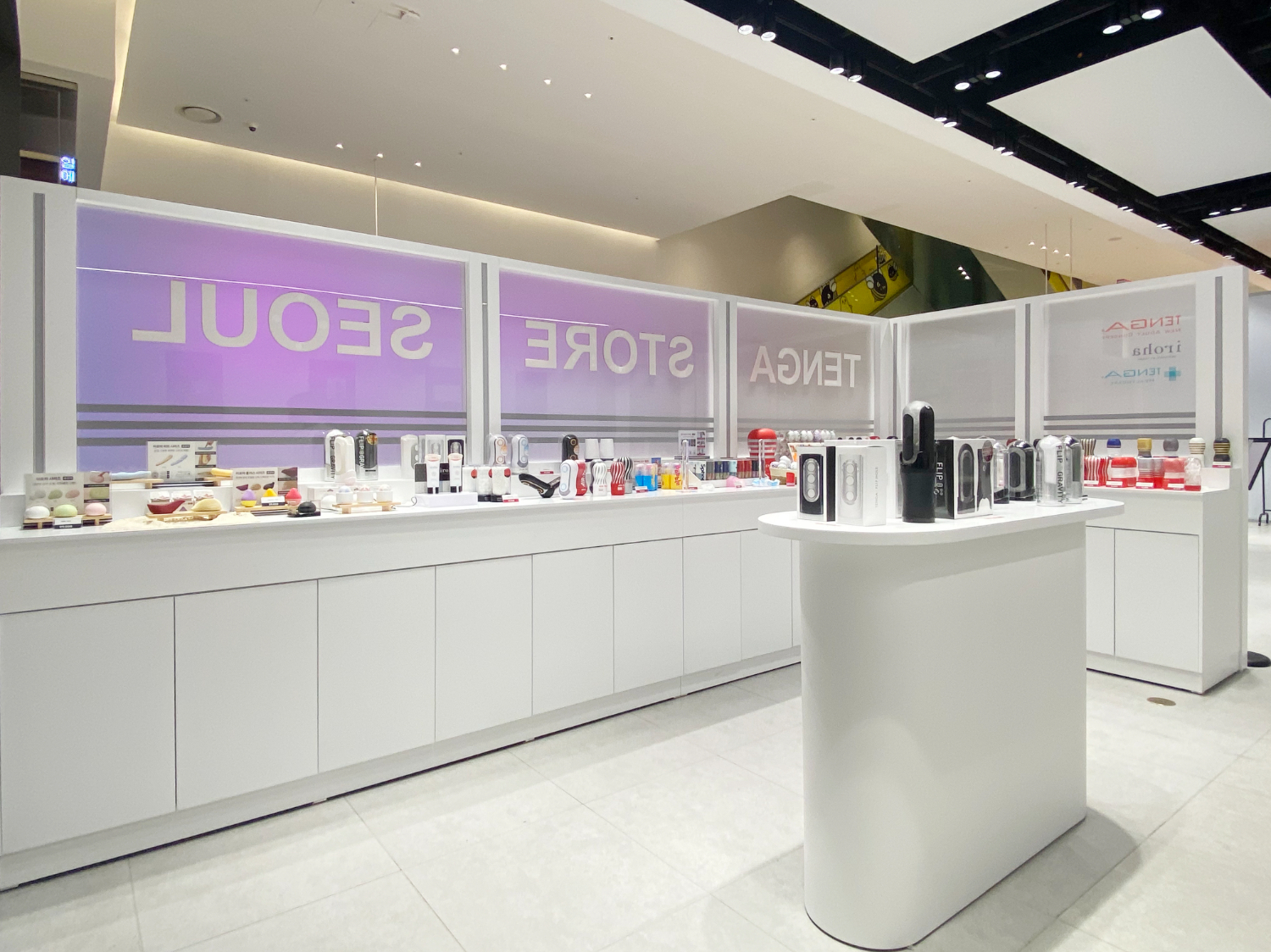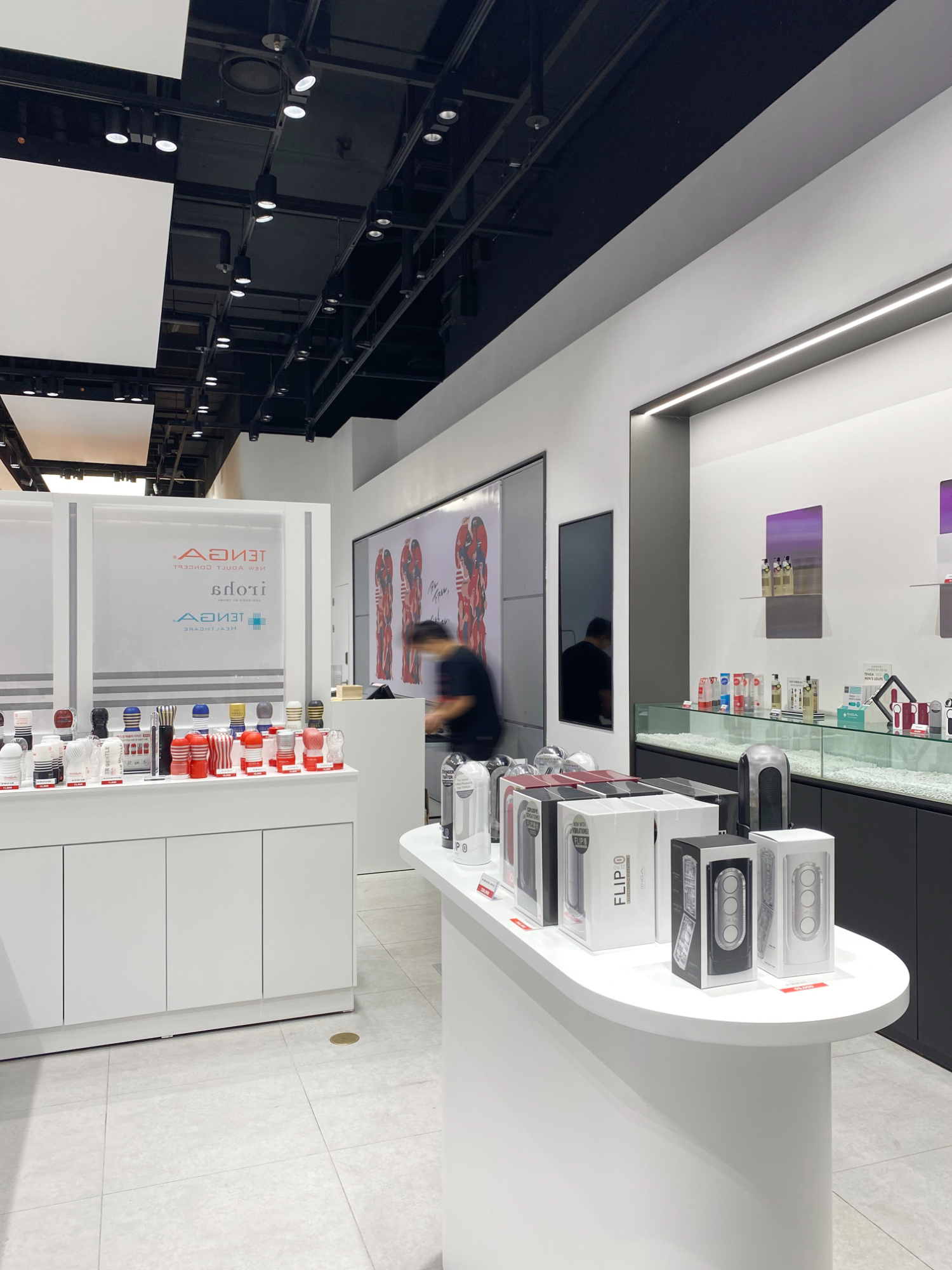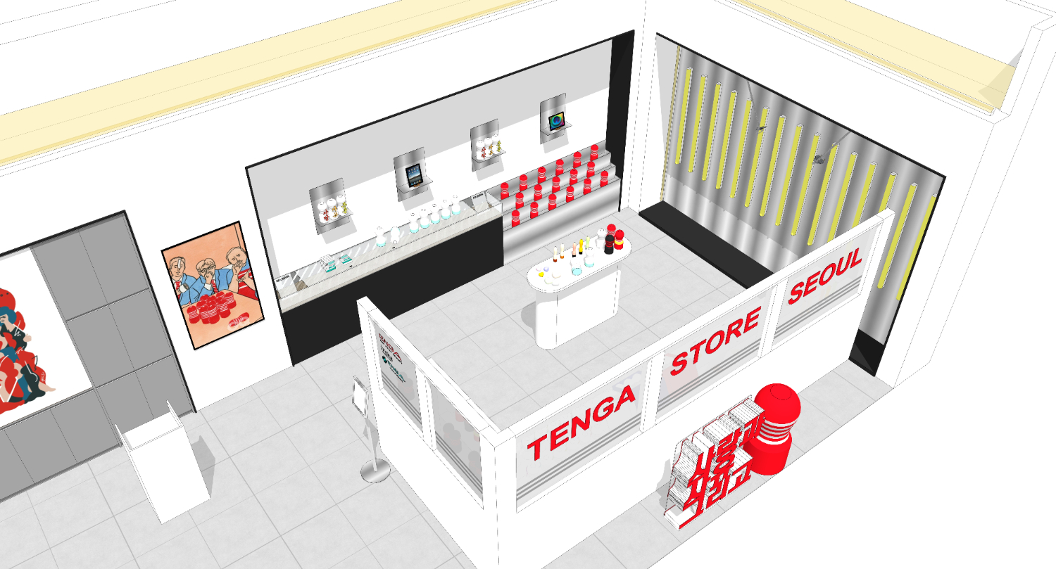 제품 특성상 19세 이상이 사용 가능한 부분이 있었기 때문에 반대편은 프라이빗한 전시 공간으로 구성 했습니다.진열대와 가림막을 하나로 만들어 외부에서 보면 가벽이고 내부에서 보면 넓은 진열대로 센스있게 제작 했습니다.