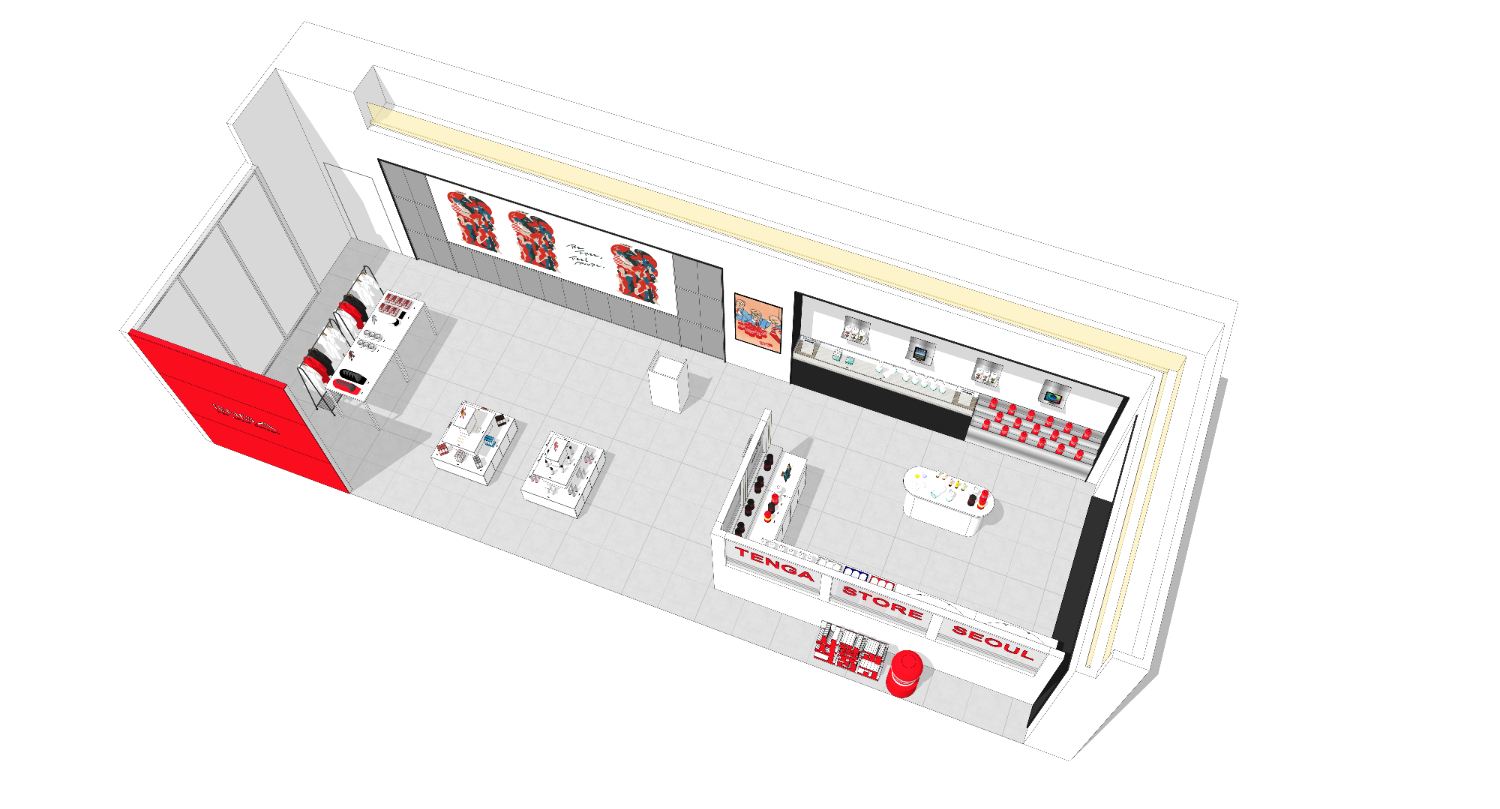 오늘 소개해드릴 홍대 AK몰 팝업스토어 현장을 통해 브랜드의 아이텐티티를 반영한 효과적인 인테리어가 무엇인지 참고하시면 좋을 것 같습니다.먼저 3D디자인 스케치업을 확인해보겠습니다. 강렬한 레드 컬러가 돋보이는 이번 현장은 크게 3개의 공간으로 구분할 수 있습니다.