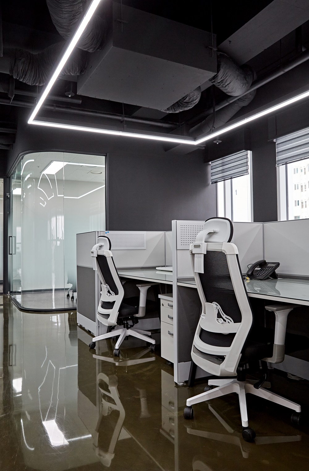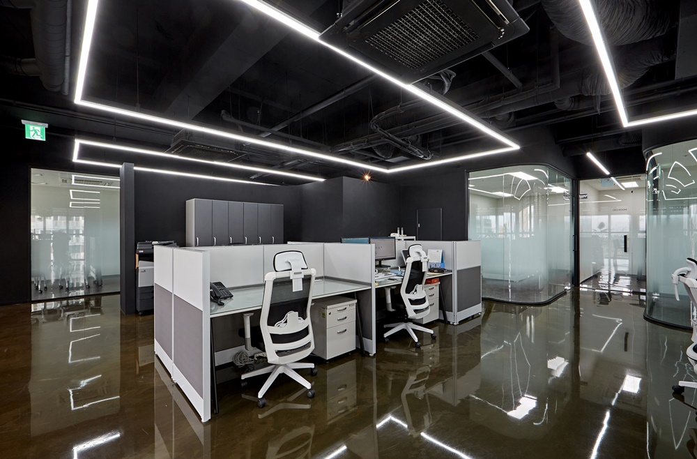 사무실 내부 조도를 균일하게 맞춰주는 라인조명은