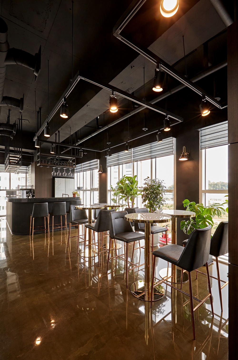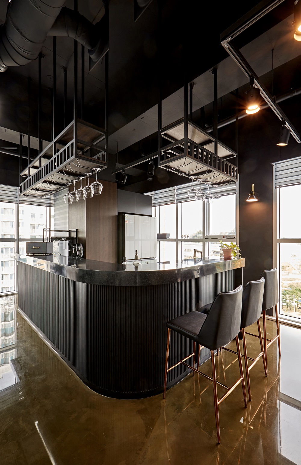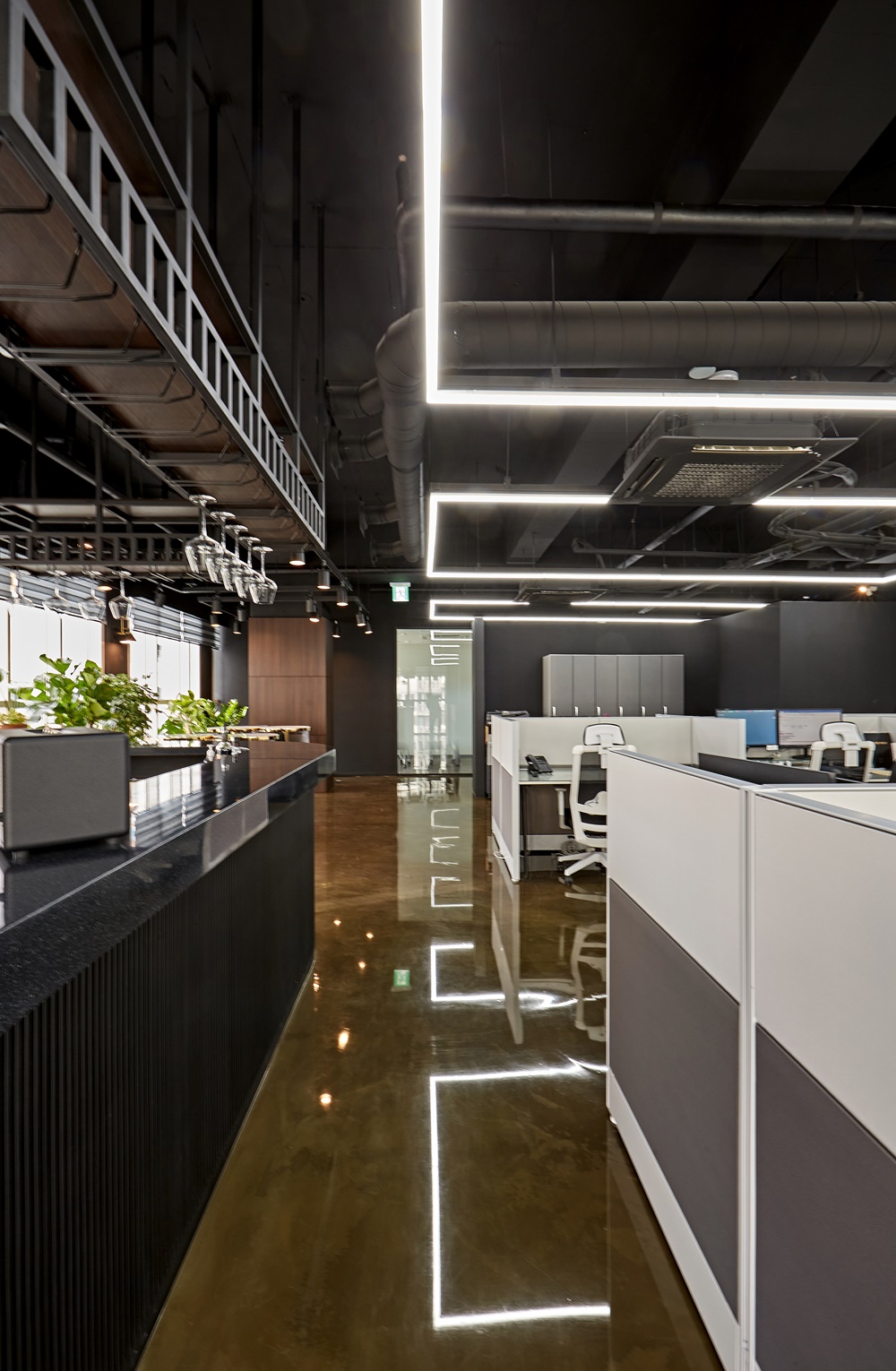 노출천장과 라인조명은 현대적인 감각과 세련된 분위기를 연출할 수 있어