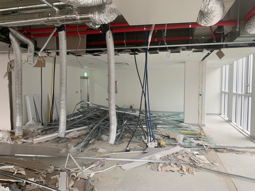 기존의 천장을 철거하고, 필요한 경우 배관과 설비를 정리했으며 철거 후 노출된 천장을 마감했습니다.