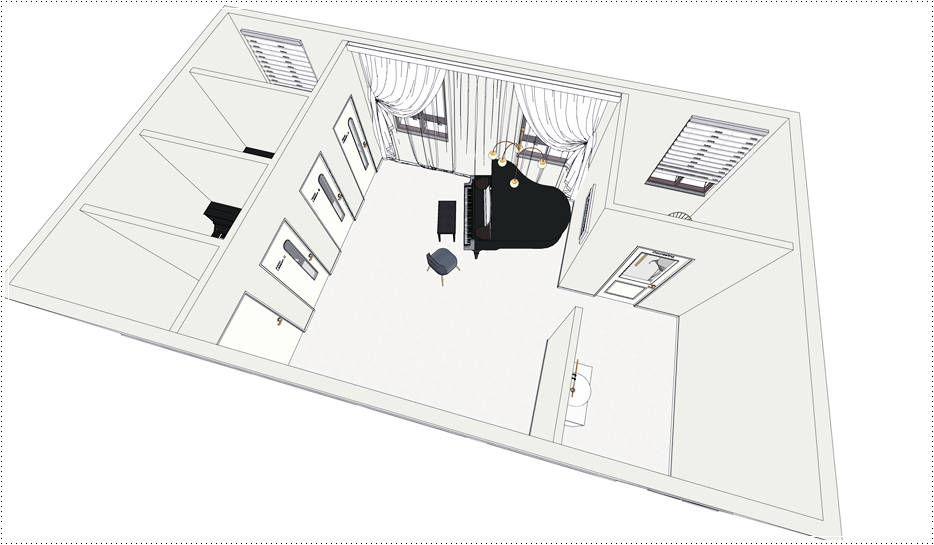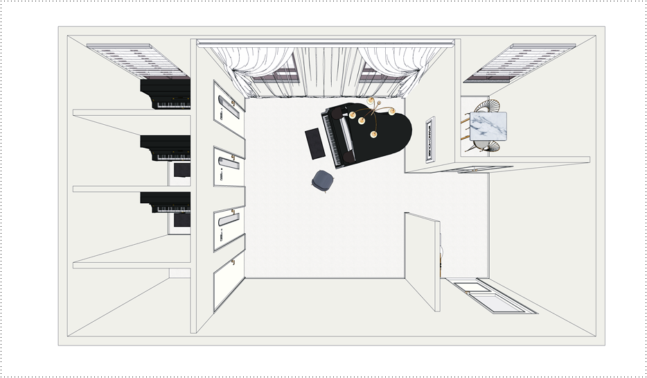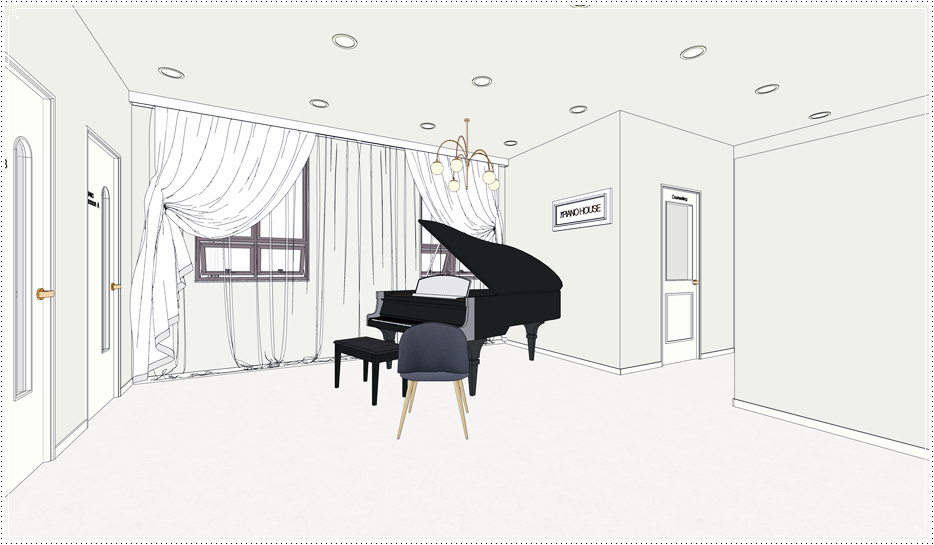 메인홀의 그랜드 피아노가 놓이는 공간도 일부 강의 공간으로 인정이 되기 때문에 이를 염두하고 설계에 반영해야 합니다. 연주홀로도 활용할 수 있는 중앙홀은 클래식하게 꾸며 콘서트장에 방문한 것과 같은 느낌이 들도록 했고 벽면의 천장부터 바닥에까지 이르는 커튼 인테리어를 계획해 호텔 로비와 같은 고급스러움이 느껴지도록 했습니다.