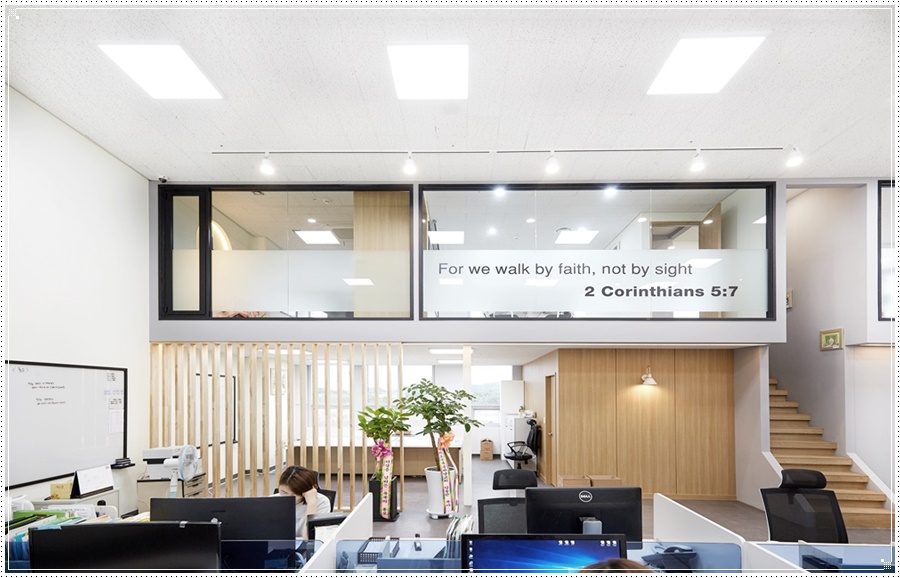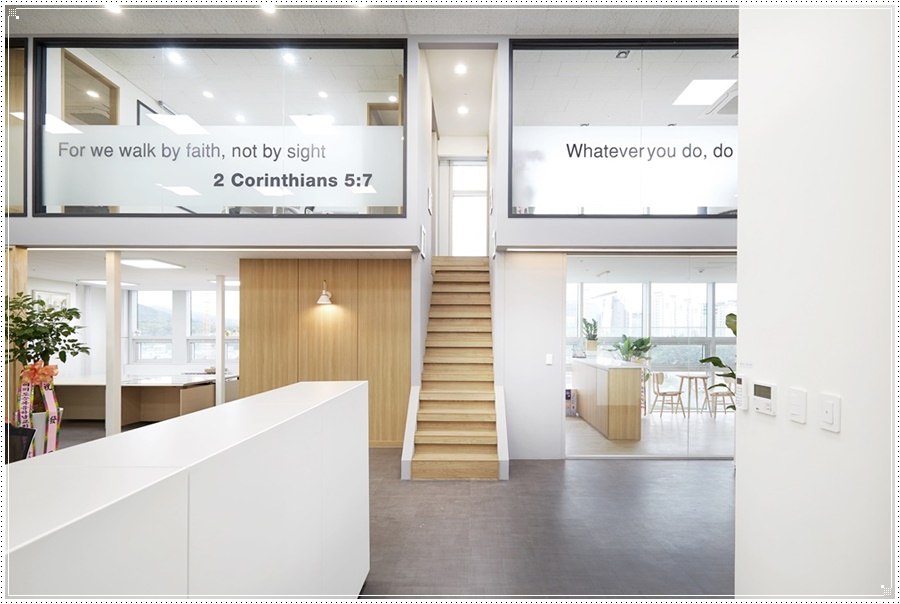 이렇게 완공된 화성 동탄 수원 영통 사무실인테리어의 입구입니다.앞의 공사 중이던 모습이 이렇게 바꼈습니다. 한정된 공간에서 다양한 활동 및 기능을 담을 수 있는 복층 공사는 현장 구조에 맞게 설계하고 튼튼하고 견고하게 시공하는 916 디자인과 상담하시면 안전하고 쾌적한 복층사무실공사를 진행해드리겠습니다. 금속 골조를 잡은 전문 인테리어 복층 시공에 경험이 많은 916디자인에 언제든지 연락주세요.