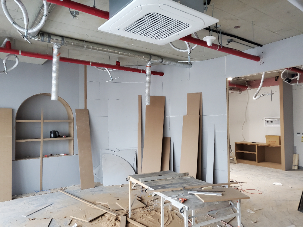 그렇게 디자인 계획이 수립되고나면 실제로 구현하는 공사에 돌입하게 됩니다. 공사는 기존의 물품들을 모두 철거하는것에서부터 시작하며 토대를 잡는 목공 작업에서부터 배관, 전기, 수도와 같은 설비를 시작하고 그 다음에 조명, 도장, 유리 등 디테일한 것들이 도입되는데요.