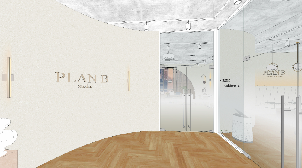 그리고 마지막으로 이곳의 히든 공간이자, 조금은 특별한 포인트인 스튜디오인데요. 일반 사무실이 아니라 이렇게 아이템 업로드를 위한 촬영 공간이 필요했습니다. 그래서 조명을 넓게 설치하고, 전체를 화이트로 도장하여 어디에서나 깔끔한 작품이 나올 수 있게 도와드렸습니다. 그리고 도어는 아치형태로 마감하면서 모루유리로 포인트를 주었는데요.