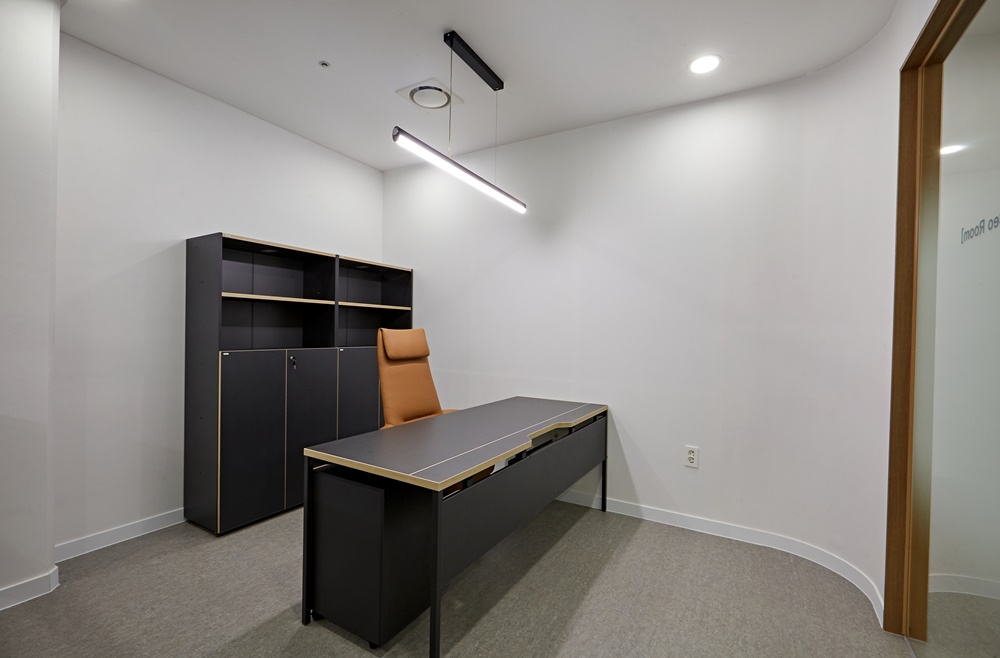 그리고 한쪽은 업무용 책상이나 회의 공간으로, 다른 쪽은 편안하게 쉴 수 있는 공간으로 활용할 수 있도록 하여 업무 효율성을 높이는 데 큰 도움이 되게끔 했어요.