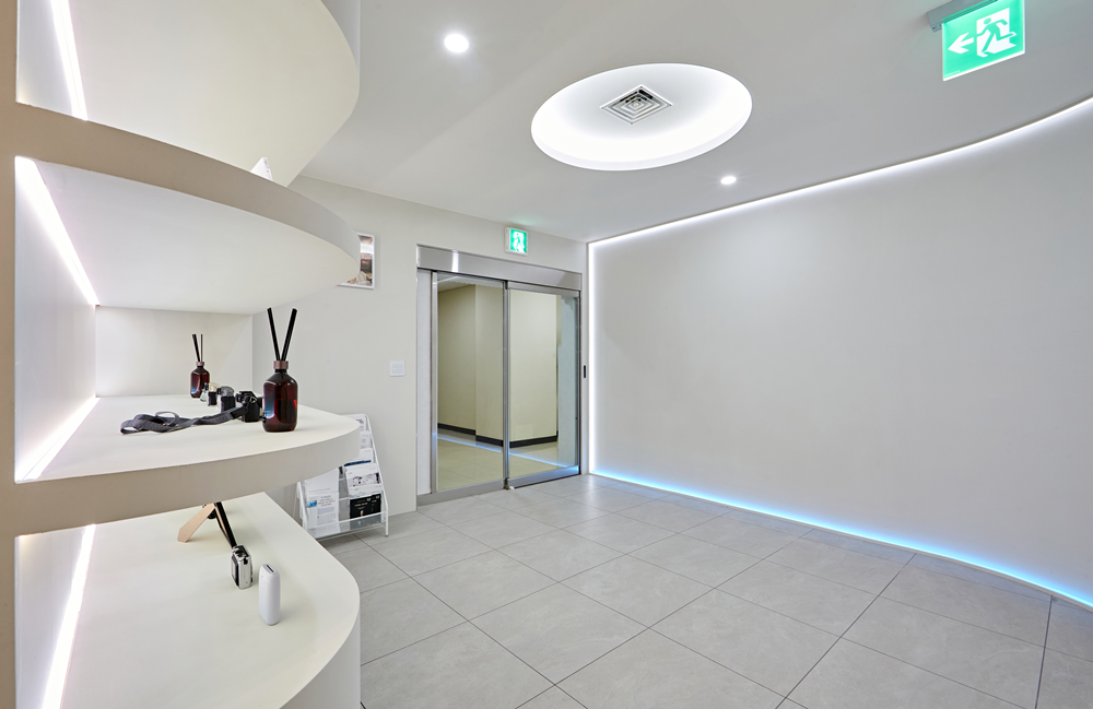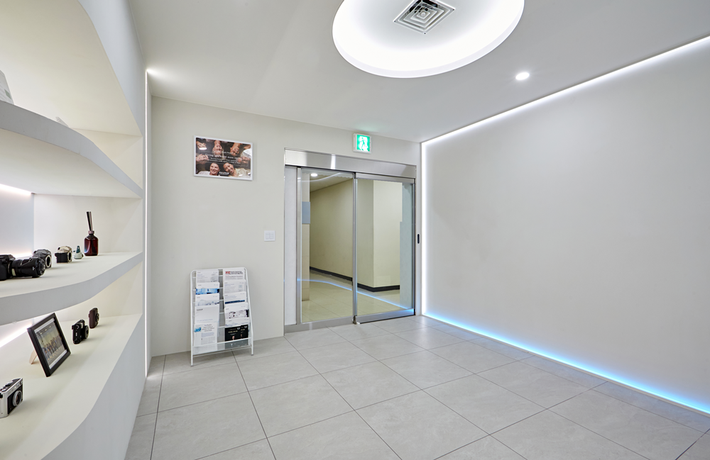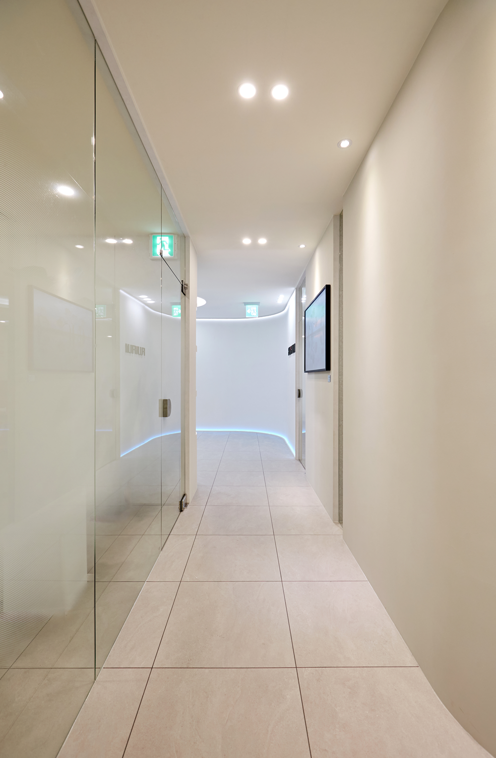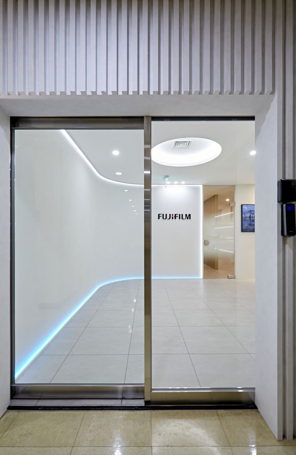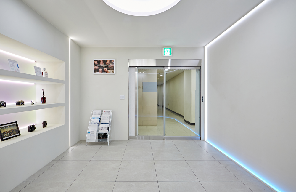입구를 들어서면 깔끔한 화이트 벽면에 로고 사인물이 반겨주는데요.