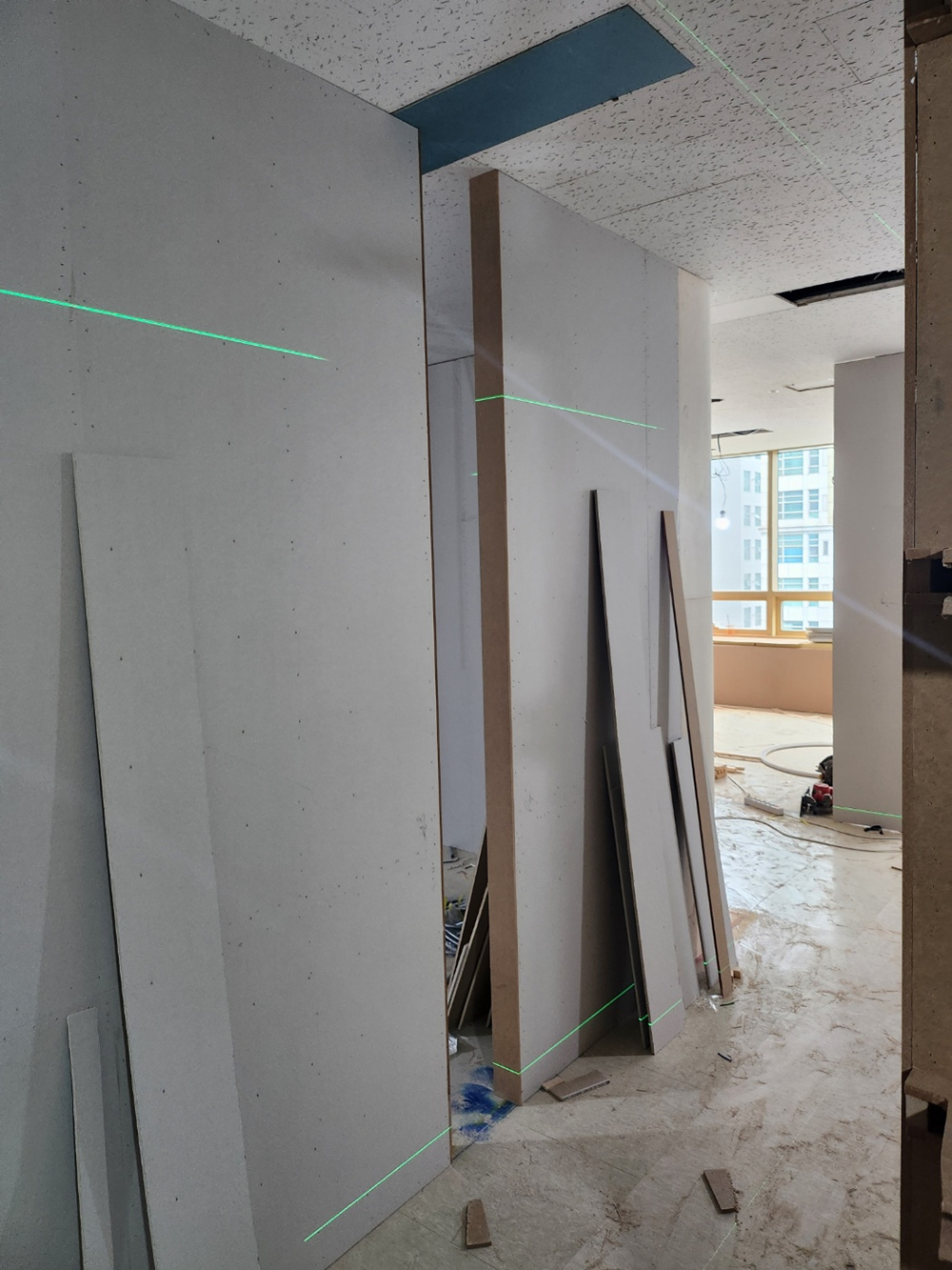이번에는 다양한 가벽 칸막이를 활용한 회사인테리어 시공 현장 사진이에요.