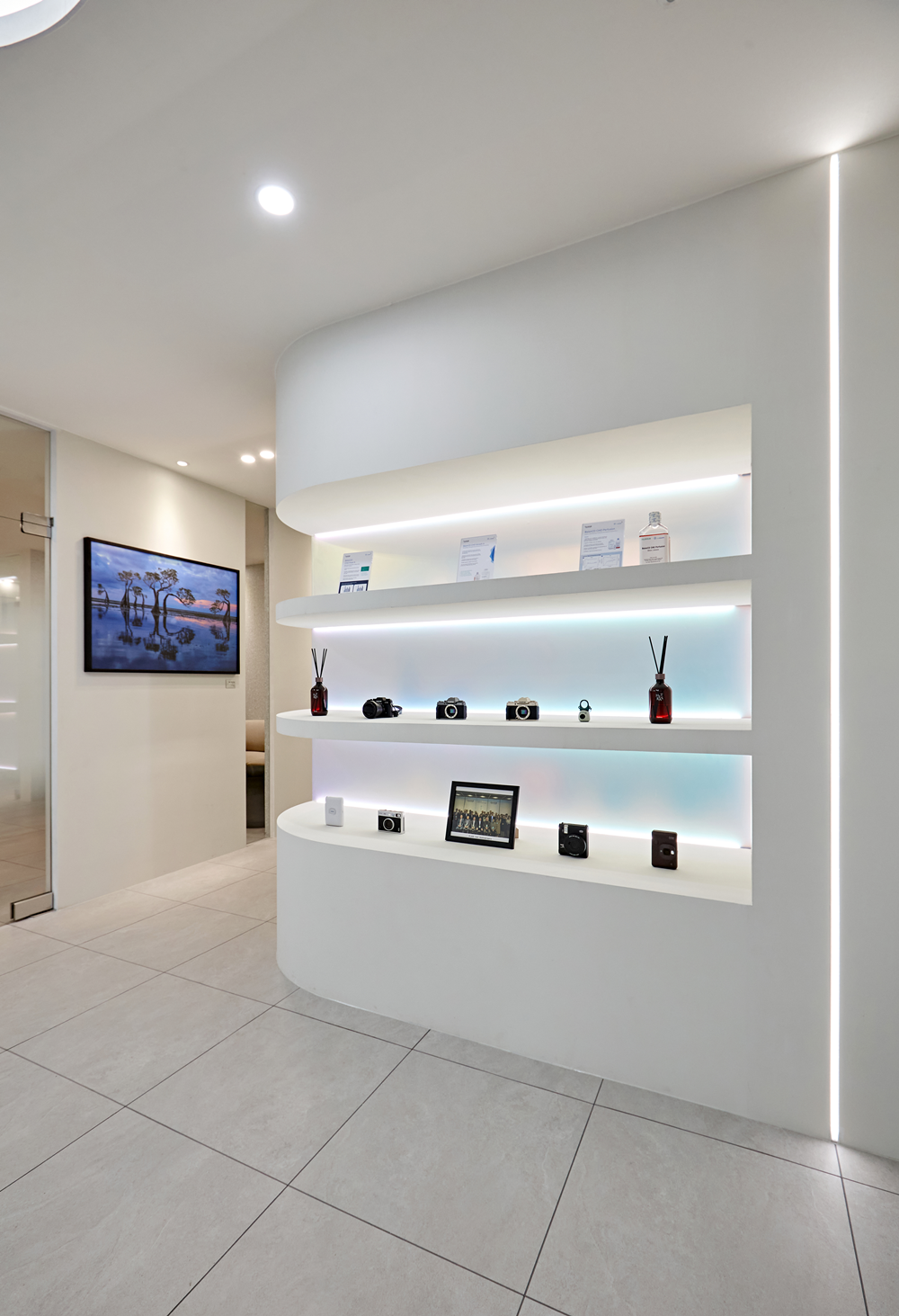 벽면 선반을 활용해 어떤 브랜드인지를 나타낼 수 있도록 했는데