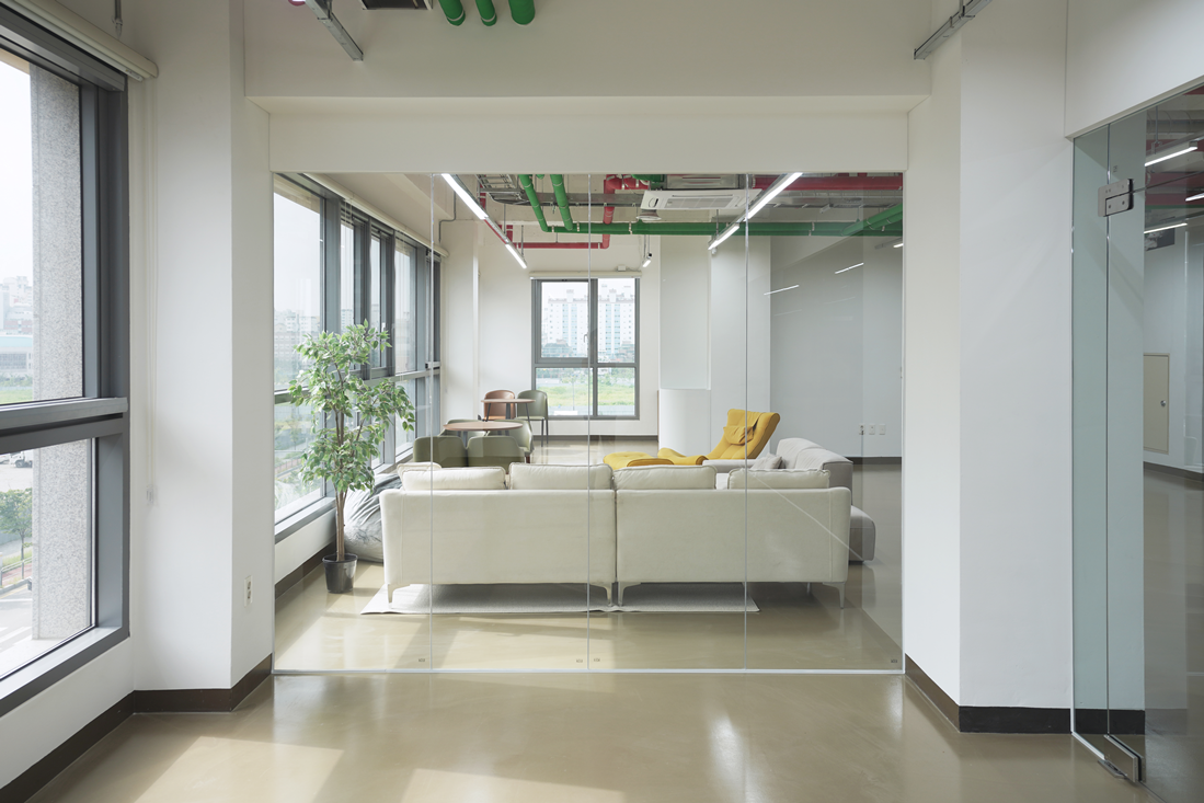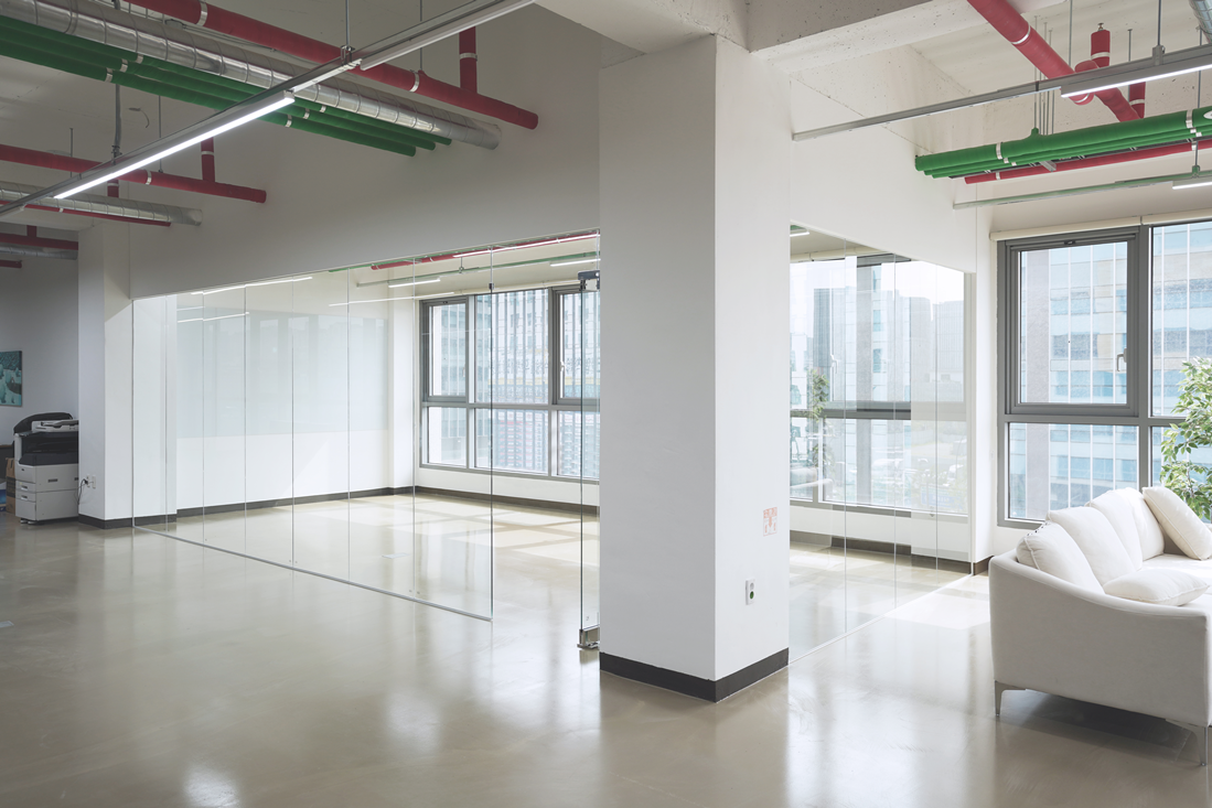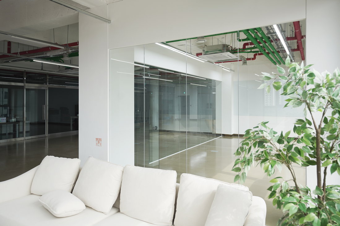 회의실과 외부 공간을 투명한 유리 가벽으로 구분하여, 개방감을 살리면서도 공간의 기능을 명확히 나눌수 있습니다.
