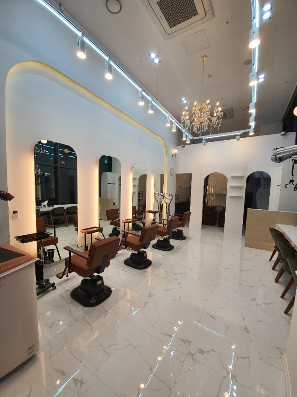 작은 헤어샵 공간에서도 효율적인 동선과 세련된 헤어샵디자인으로 통해 1인 미용실을 고급스럽게 연출할 수 있어요.