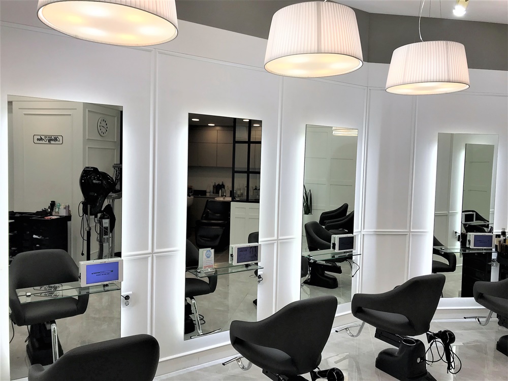 10평대 미용실의 경우 경대는 최소 1,000mm 이상의 간격으로 배치하여 고객과 미용사 모두 답답함을 느끼지 않도록 해야해요.