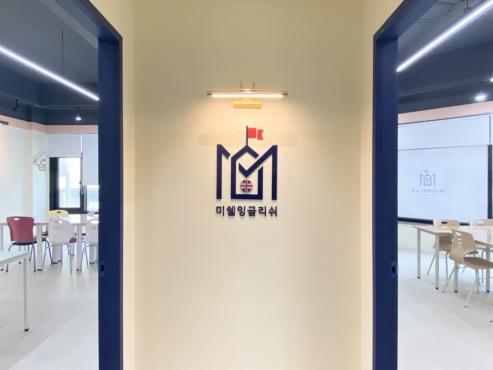 입구에 자리한 심플한 로고는 브랜드 가치를 명확히 보여주어 교습소 방문객들에게 신뢰감을 심어줄 수 있도록 했어요.