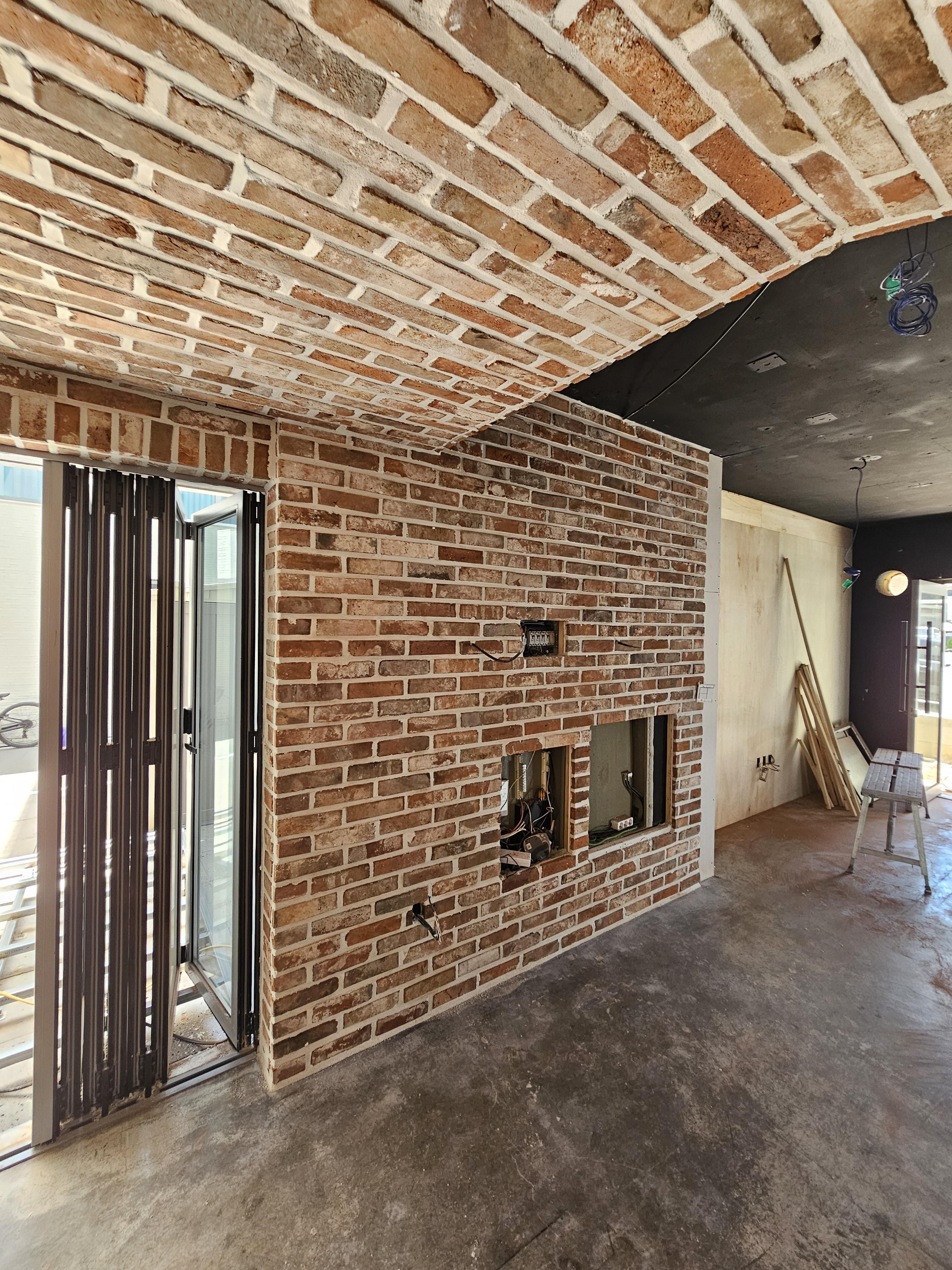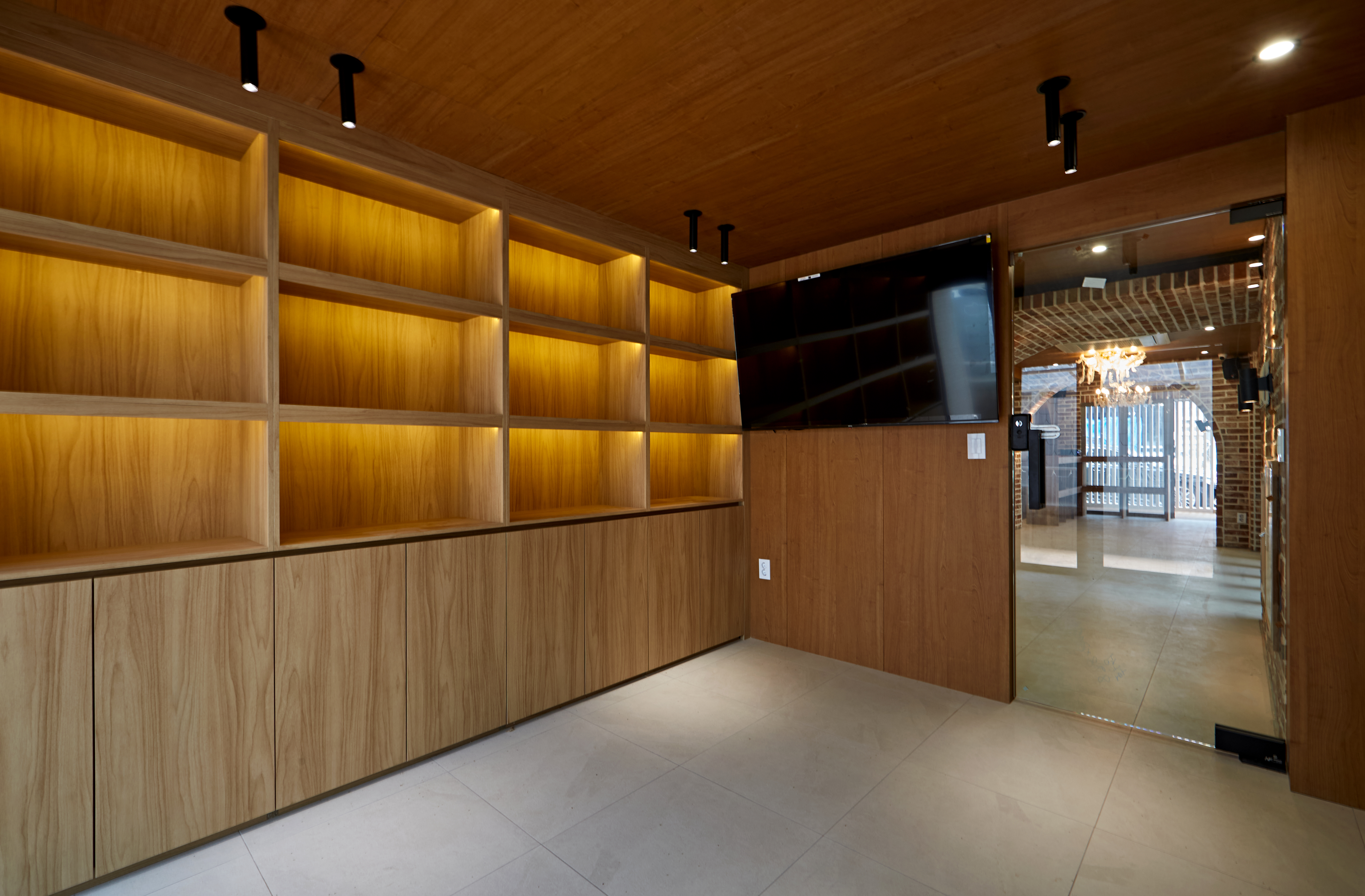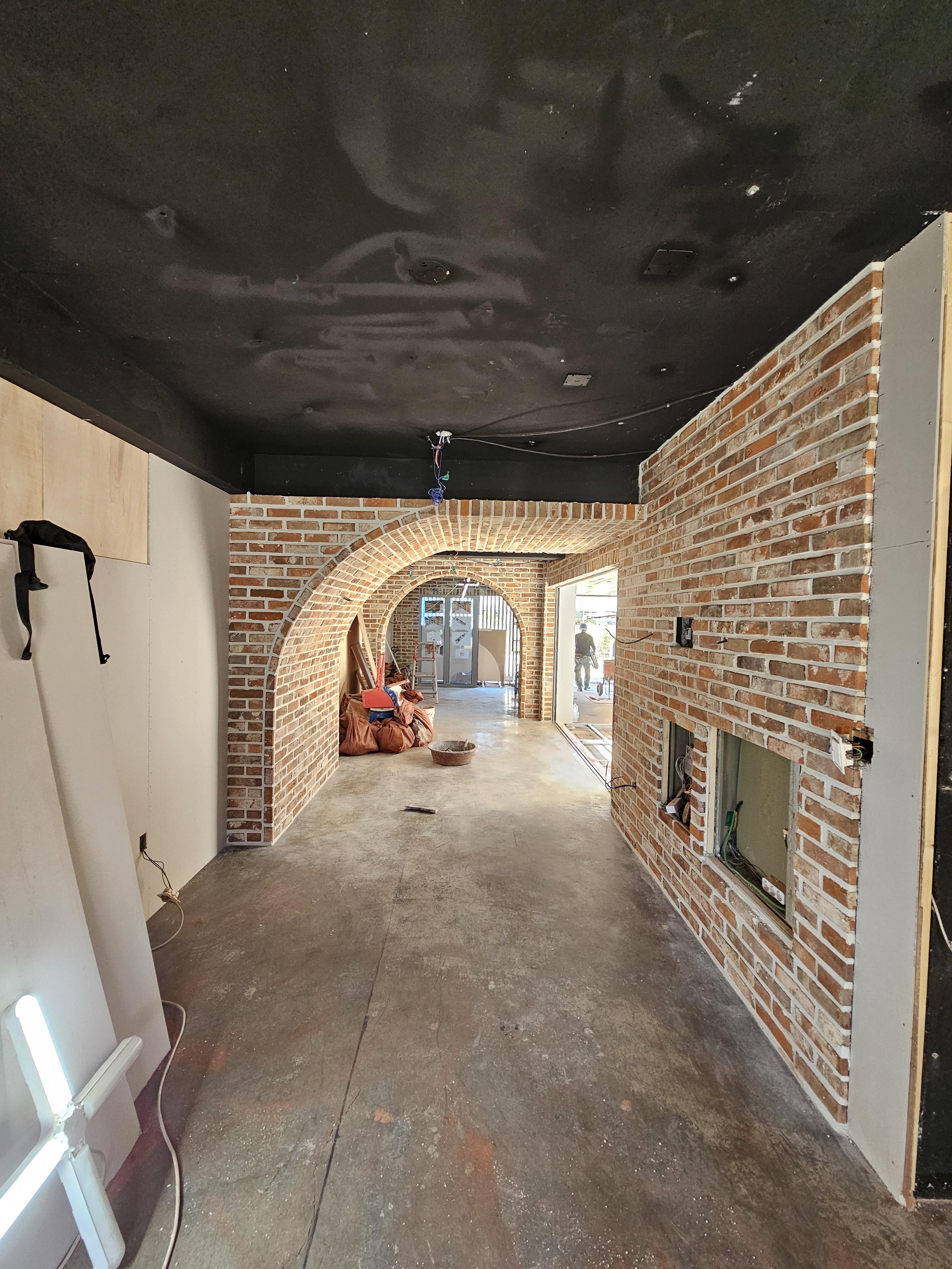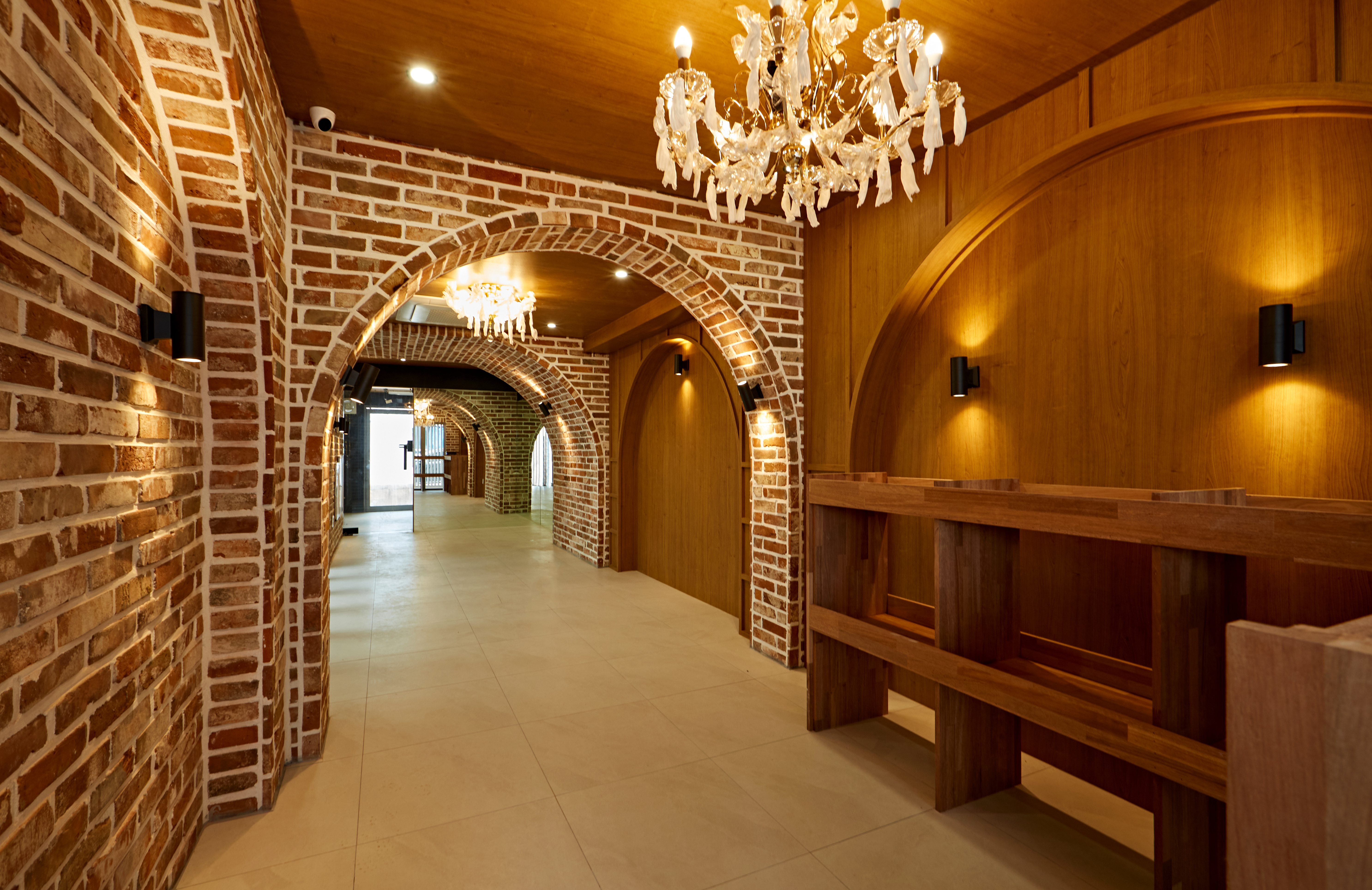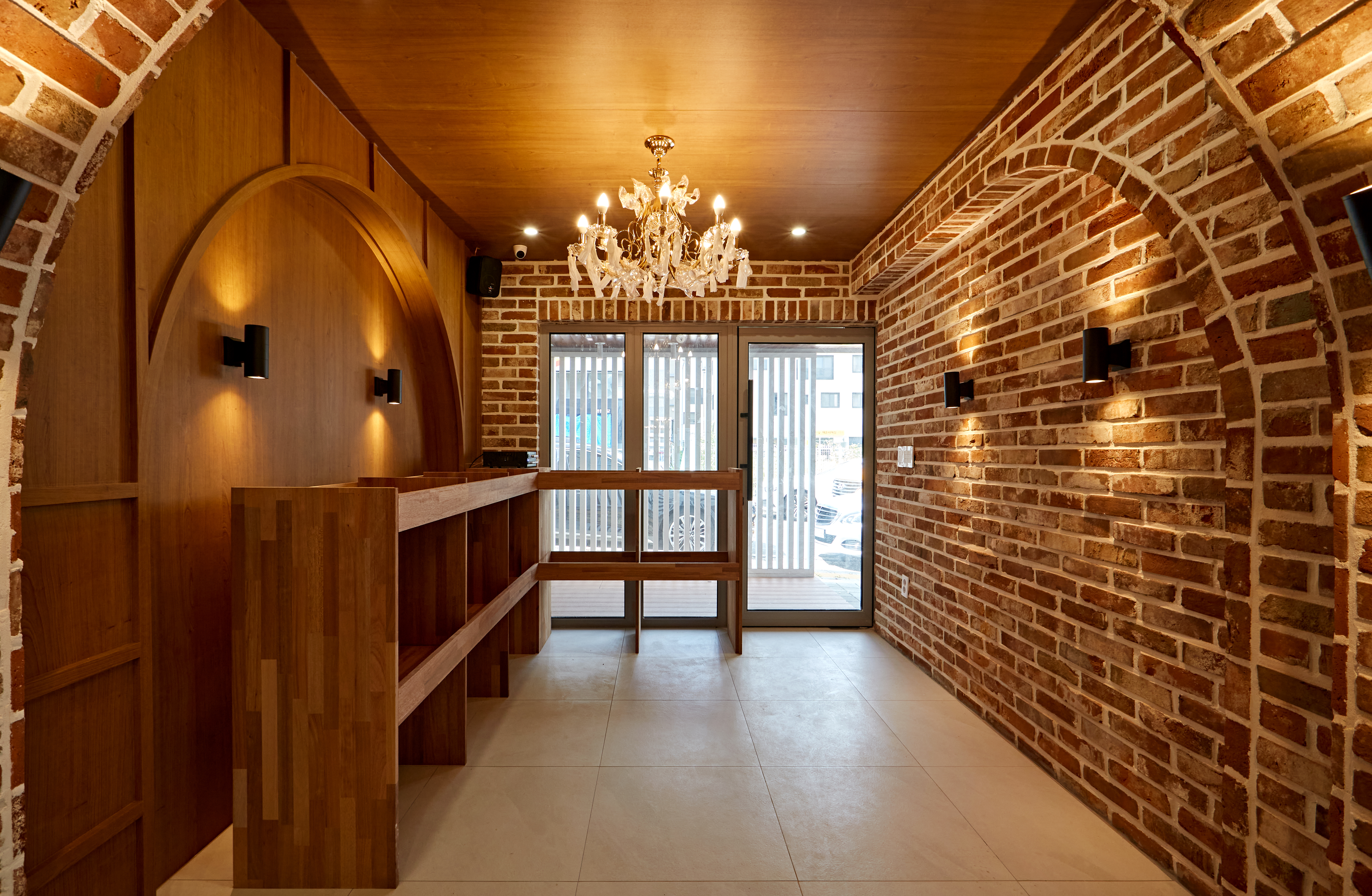 또한 따뜻한 톤의 벽돌을 전면 벽에 사용해