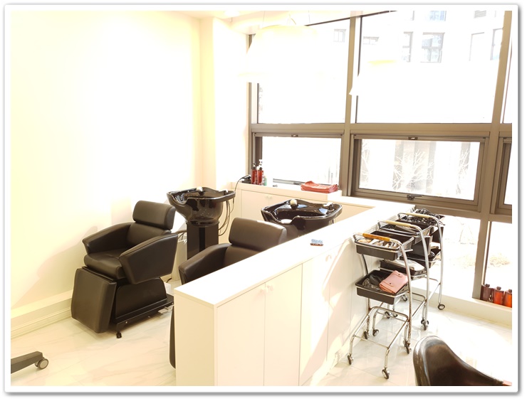 채광이 너무 좋은 공간으로 공간을 더욱더 밝고 화사하게 만들어 주고 있습니다. 샴푸를 할 수 있는 공간이 오픈되어 잇는 이유로는 전체적인 매장 공간이 좁다 보니 가림막으로 막아 진행하게 되면 답답한 느낌이 들게 되어 오픈형으로 진행하게 되었습니다.