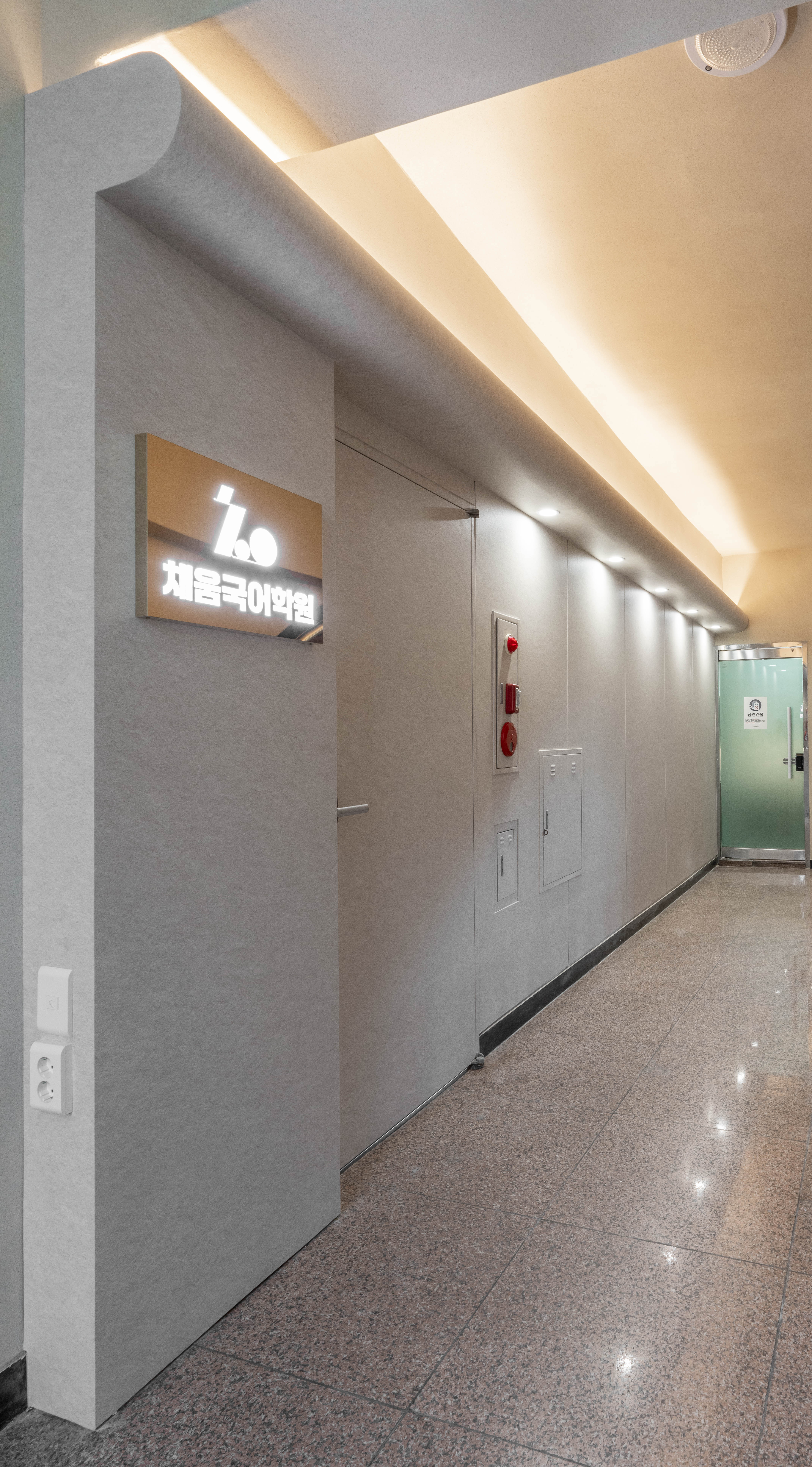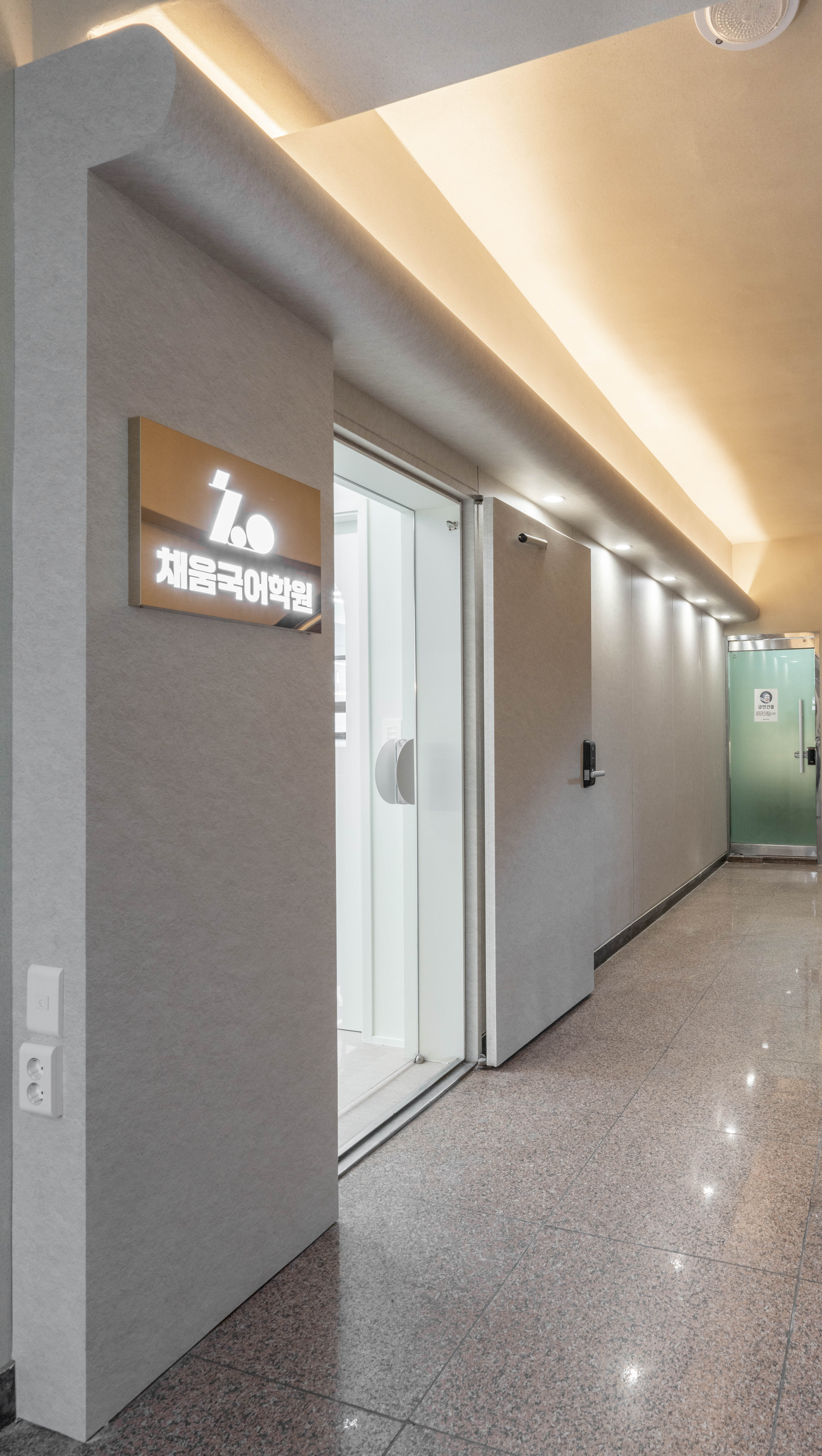 다소 어두웠던 학원 입구는 간접등을 활용해