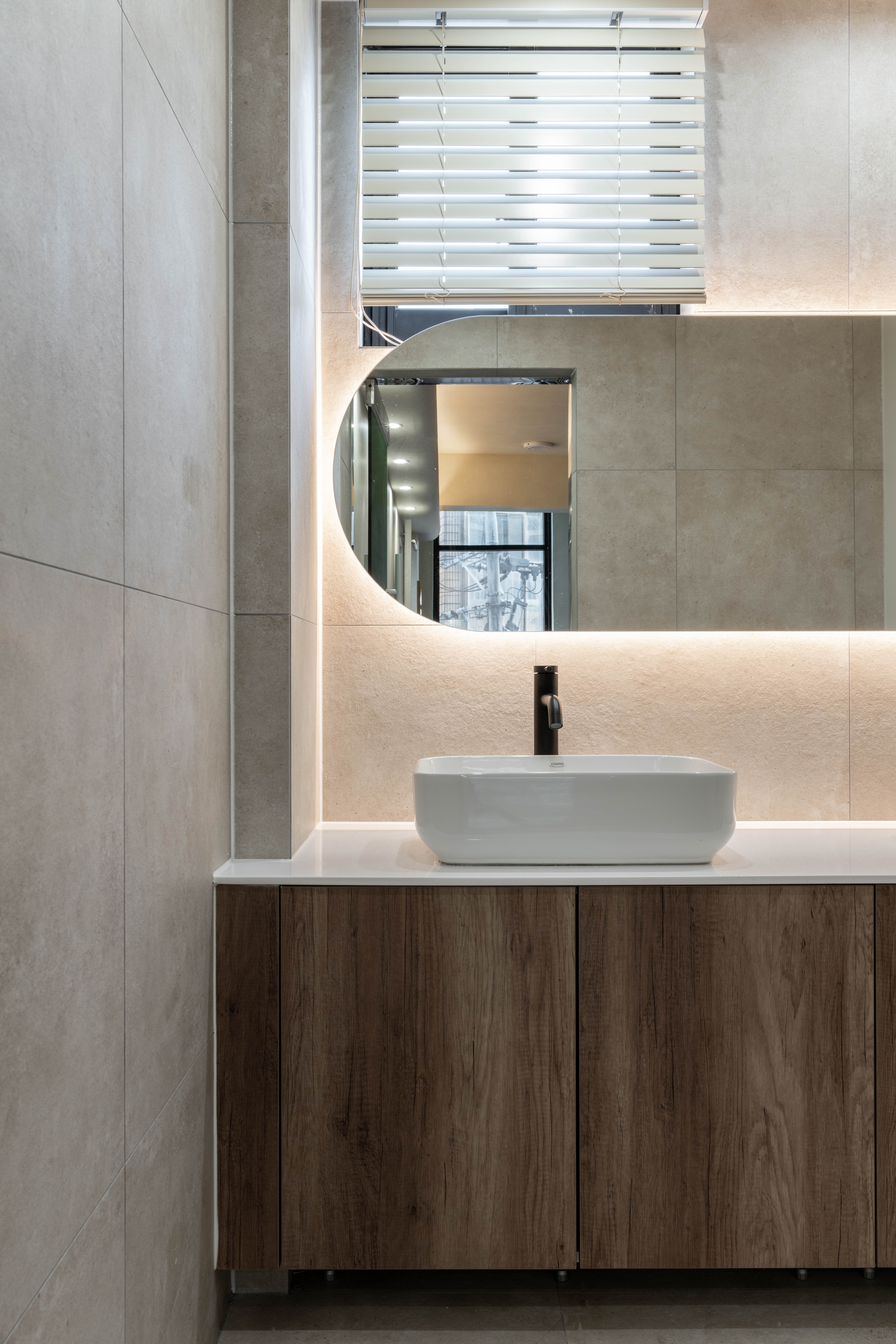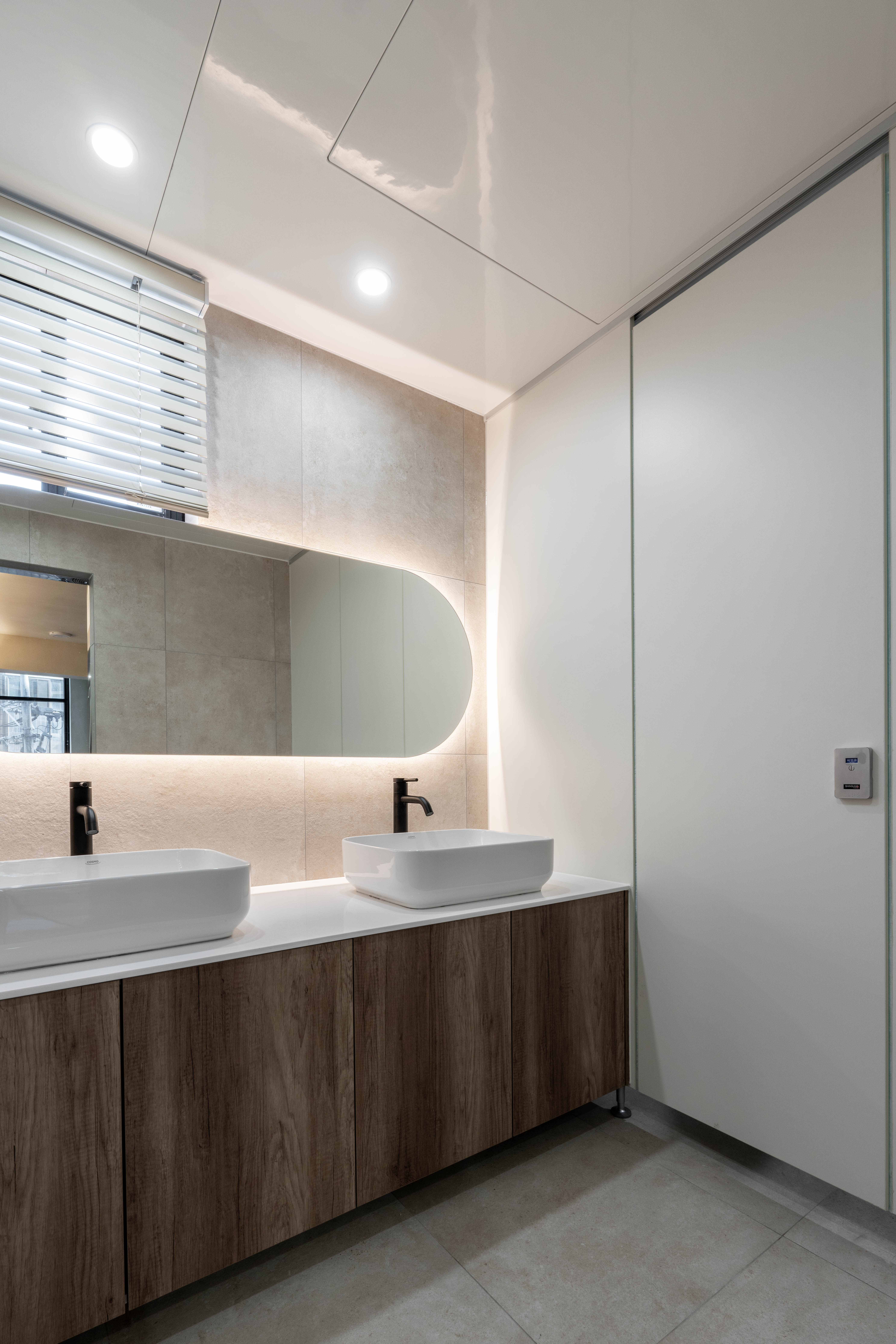 차분한 벽면과 조명이 조화롭게 어우러져