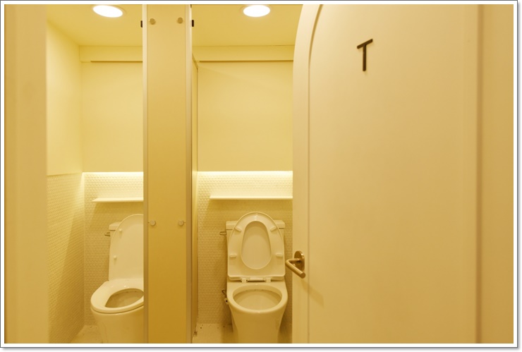 깔끔한 화이트 콘셉트로 진행된 화장실입니다. 전체적인 20평 헤어샵 인테리어 콘셉트에 맞게 라운드 형태를 표현하여 아치형으로 도어를 디자인하였으며 안쪽 공간 역시 부드러운 느낌을 보여주는 디자인을 만나 보실 수 있습니다.