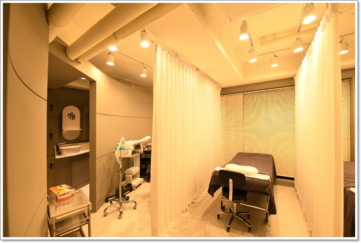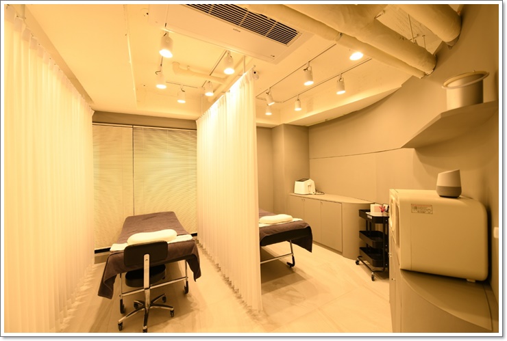 매장 안쪽에 위치하고 있는 곳으로 케어를 받을 수 있는 공간입니다. 두 명이 동시에 받을 수 있도록 자리를 만들어 드렸으며 가운데 커튼으로 분리를 시켜 프라이버시가 존중된 공간으로 완성되었습니다