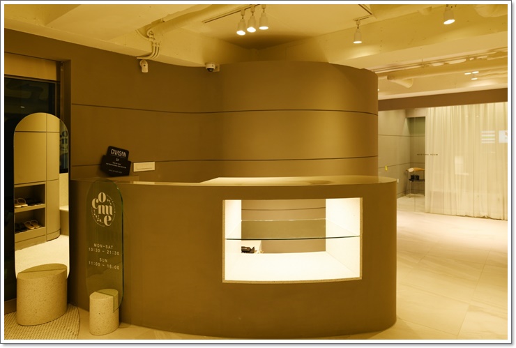 헤어숍 매장에 들어와서 바로 보이는 대기 공간에서 관리를 받을 수 있는 안쪽 공간으로 향하는 길입니다. 전체적으로 라운드 형태의 디자인으로 진행하여 부드러운 느낌을 보여주고 있으며 그레이 컬러로 진행하여 모던하면서 세련된 분위기를 연출하고 있습니다.