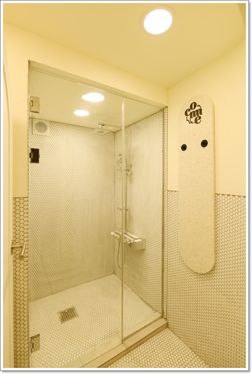 관리 후 간단하게 샤워를 할 수 있는 샤워실입니다. 샤워 부스를 설치하여 깔끔하게 사용하실 수 있도록 하였으며 세면대를 따로 배치하여 반건식 욕욕실로 이용하실 수 있도록 만들어 드렸습니다.
