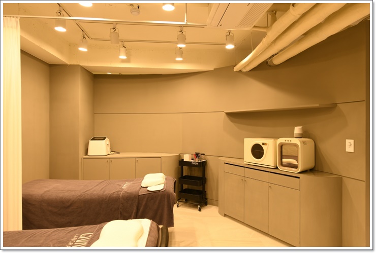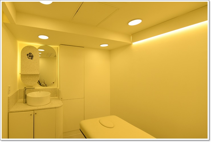 안쪽에 더욱더 프라이빗하게 관리와 케어를 받을 수 있는 공간이 마련되어 있습니다. 전체적으로 화이트 컬러로 진행하여 깔끔한 분위기를 보여주고 있으며 간접등으로만 설치하여 아늑한 공간으로 완성되었습니다.