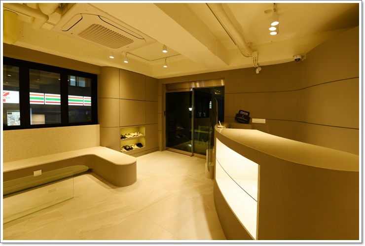 관리실에는 레일 조명을 달아 고급스러우면서 조금 더 환한 조도를 보여주고 있습니다. 커튼으로 공간을 분리하여 답답하지 않으면서 공간 분리 효과까지 볼 수 있어 매력적입니다.