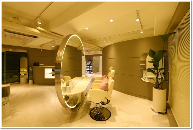 매장 안쪽에 위치하고 있는 곳으로 케어를 받을 수 있는 공간입니다. 두 명이 동시에 받을 수 있도록 자리를 만들어 드렸으며 가운데 커튼으로 분리를 시켜 프라이버시가 존중된 공간으로 완성되었습니다