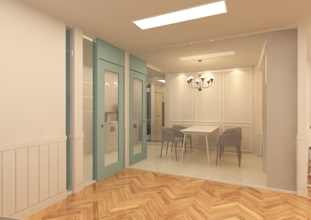 최근 진행했던 청가상가인테리어 현장 중 논술학원으로 운영될 공간의 디자인을 소개해 드리려고 합니다.강의실이 총 네 개로 구성된 공간이었는데요.각 강의마다 컬러를 다르게 활용하여 차