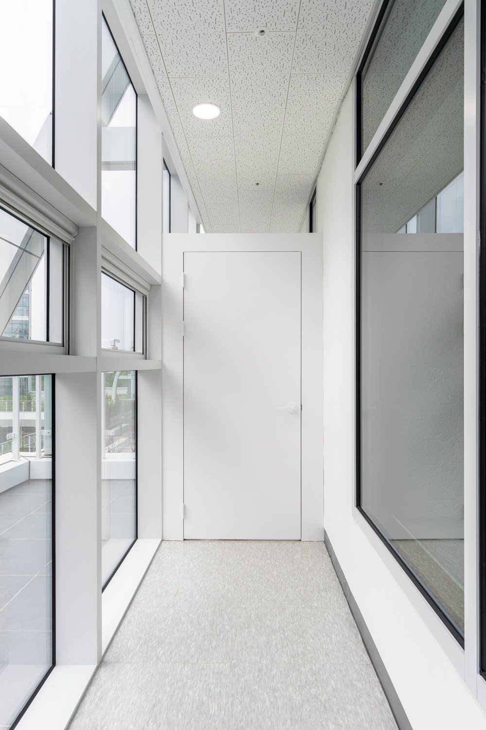 테라조 바닥재와 화이트 톤의 조합은 밝고 모던한 업무 환경을 만들어 주고 고급스러움을 원한다면 시멘트 질감의 바닥재와 우드 재질을 대비시켜 공간별로 다른 성격을 부여할 수 있어요.