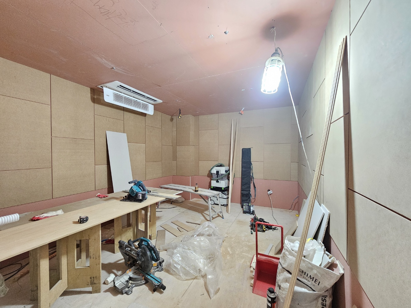 벽면은 흡음 패널로 시공하여 외부