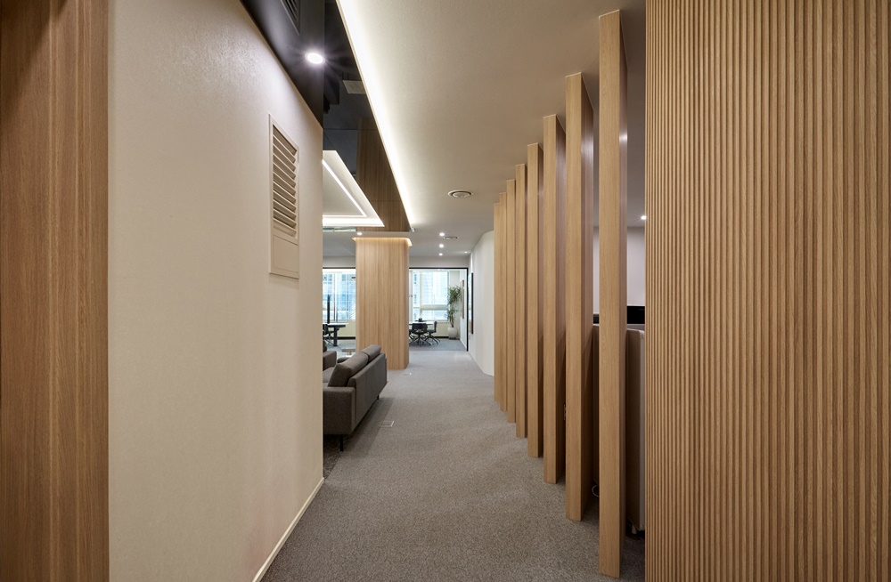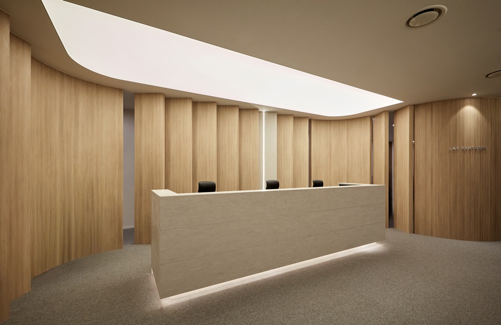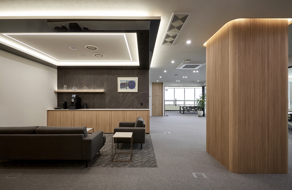 또, 벽면의 부드러운 곡선은 의뢰인이 자연스럽게 상담실로 유입될 수 있도록 동선을 유도하는 역할을 했습니다.