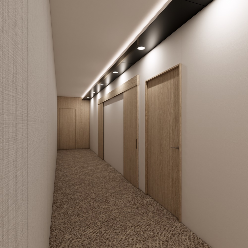 3D 렌더링 단계에서 조명의 조도와 반사율을 미리 계산하여, 자칫 차가워 보일 수 있는 변호사사무실 특유의 분위기를 따뜻한 우으 톤과 간접 조명으로 중화시켰습니다.