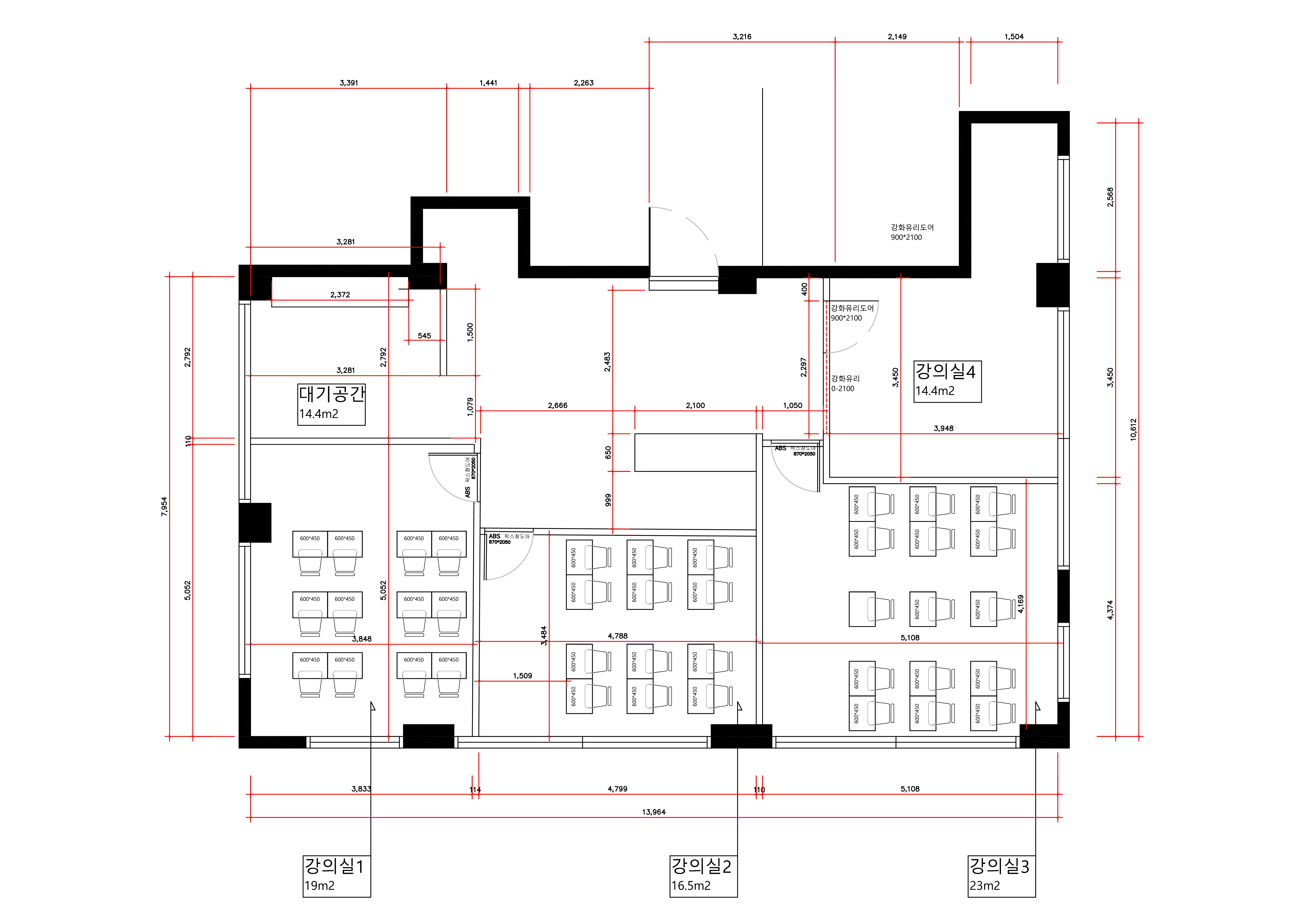 신내동 신림 관악 교습소인테리어, 30평 40평 학원 3D 디자인