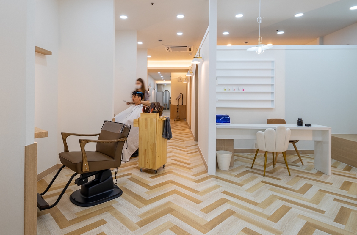 목재베이스 헤어샵 미용실인테리어 디자인컨셉 연출