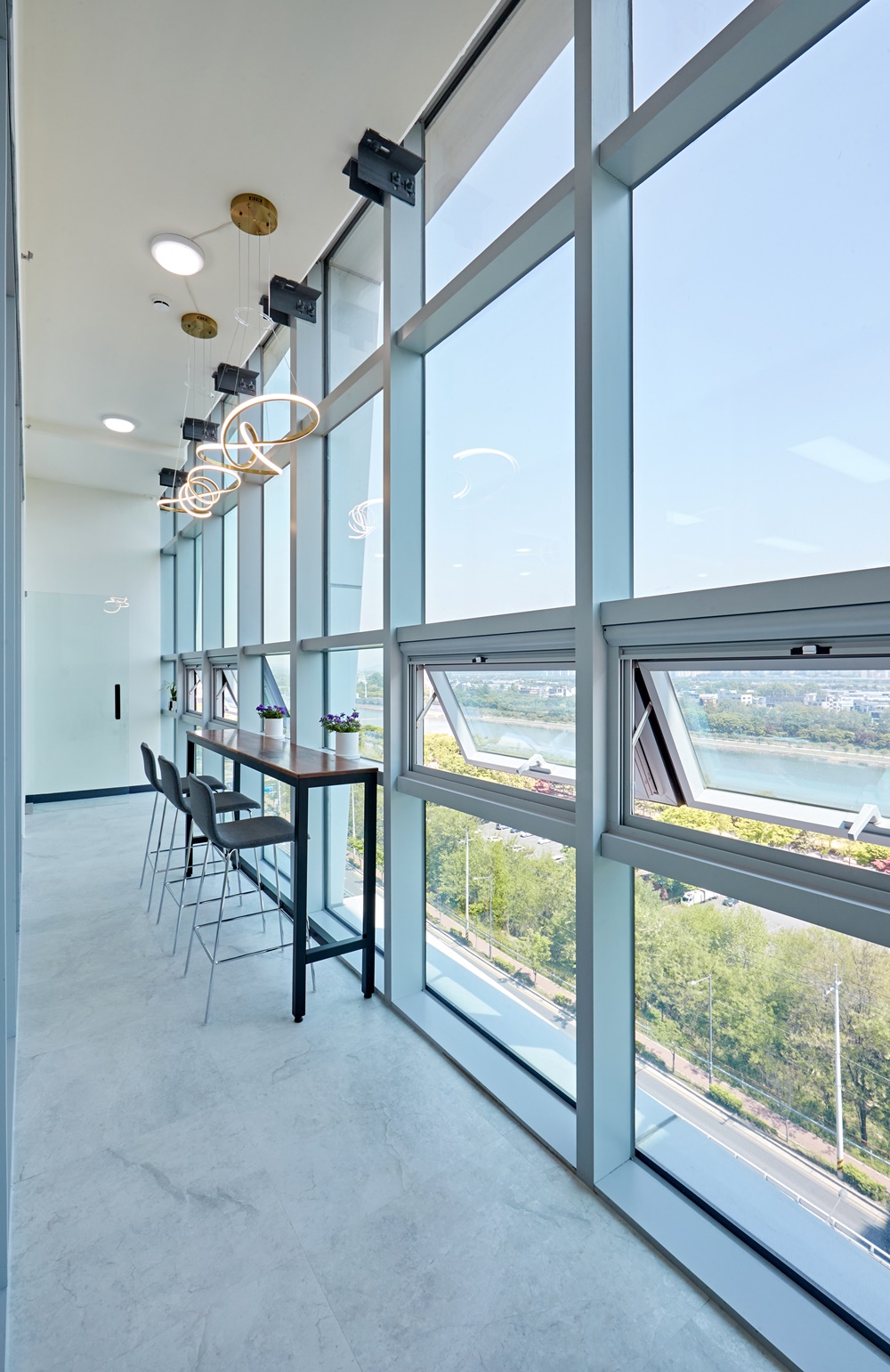 휴식하는 공간에는 은은한 주광색 조명을 설치했다면 집중이 필요한 업무 공간에는 밝은 백색광을 설치한 것인데요.