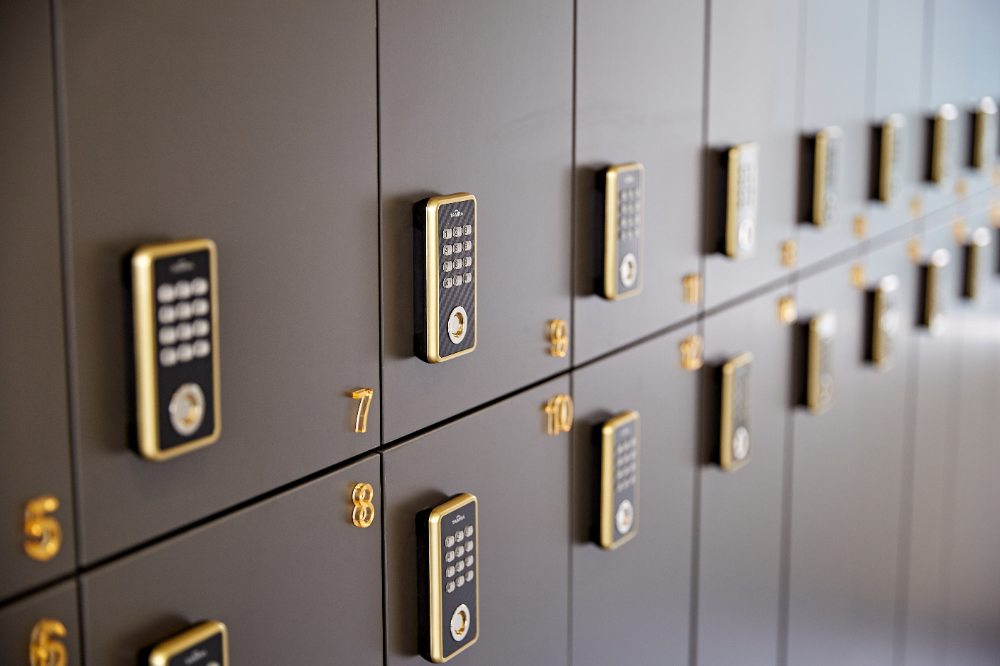 출입문 옆쪽으로는 골드 컬러의 입체
