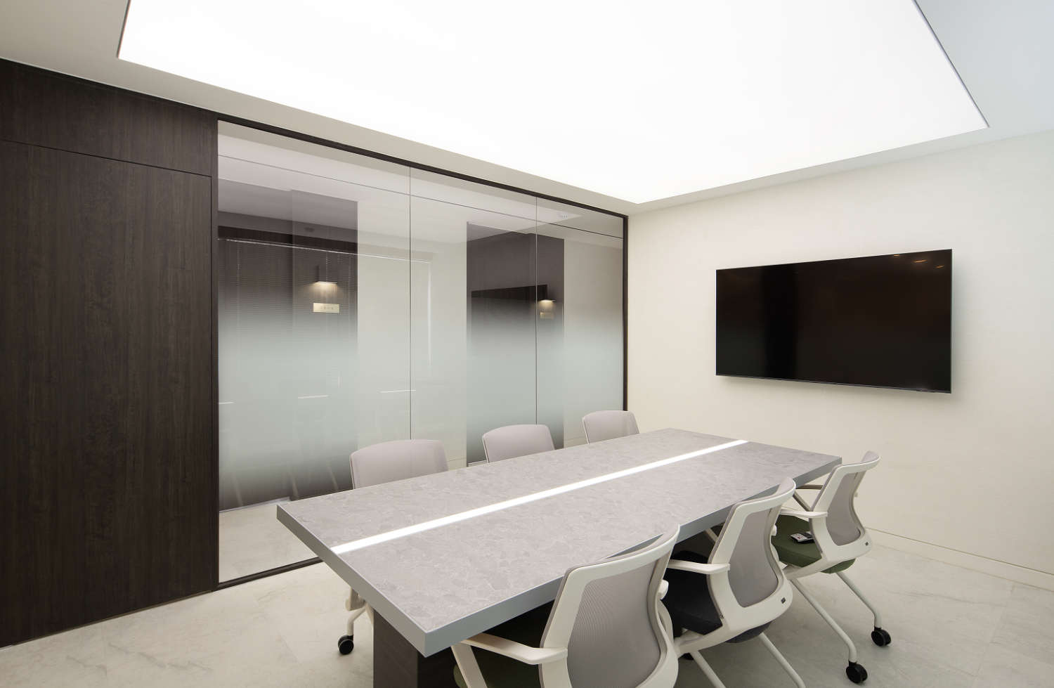 강남 변호사사무실인테리어의 미팅룸 내부도 고급스러운 대리석 질감의 중앙 테이블과 큼지막한 모니터가 준비되어 있으며 통창으로 되어 있는데요. 통창은 의뢰인분이 원하시는 분위기를 조절할 수 있도록 블라인드가 설치되어 답답한 분위기가 싫으시다면 오픈이 가능하고 아니시라면 더욱 프라이빗한 분위기를 즐길 수 있습니다.