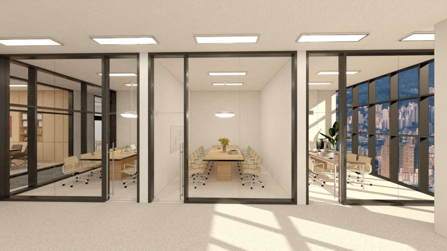 3개의 회의실은 개방감 있게 글라스 월에 블랙 프레임으로 입구를 시공 했습니다.