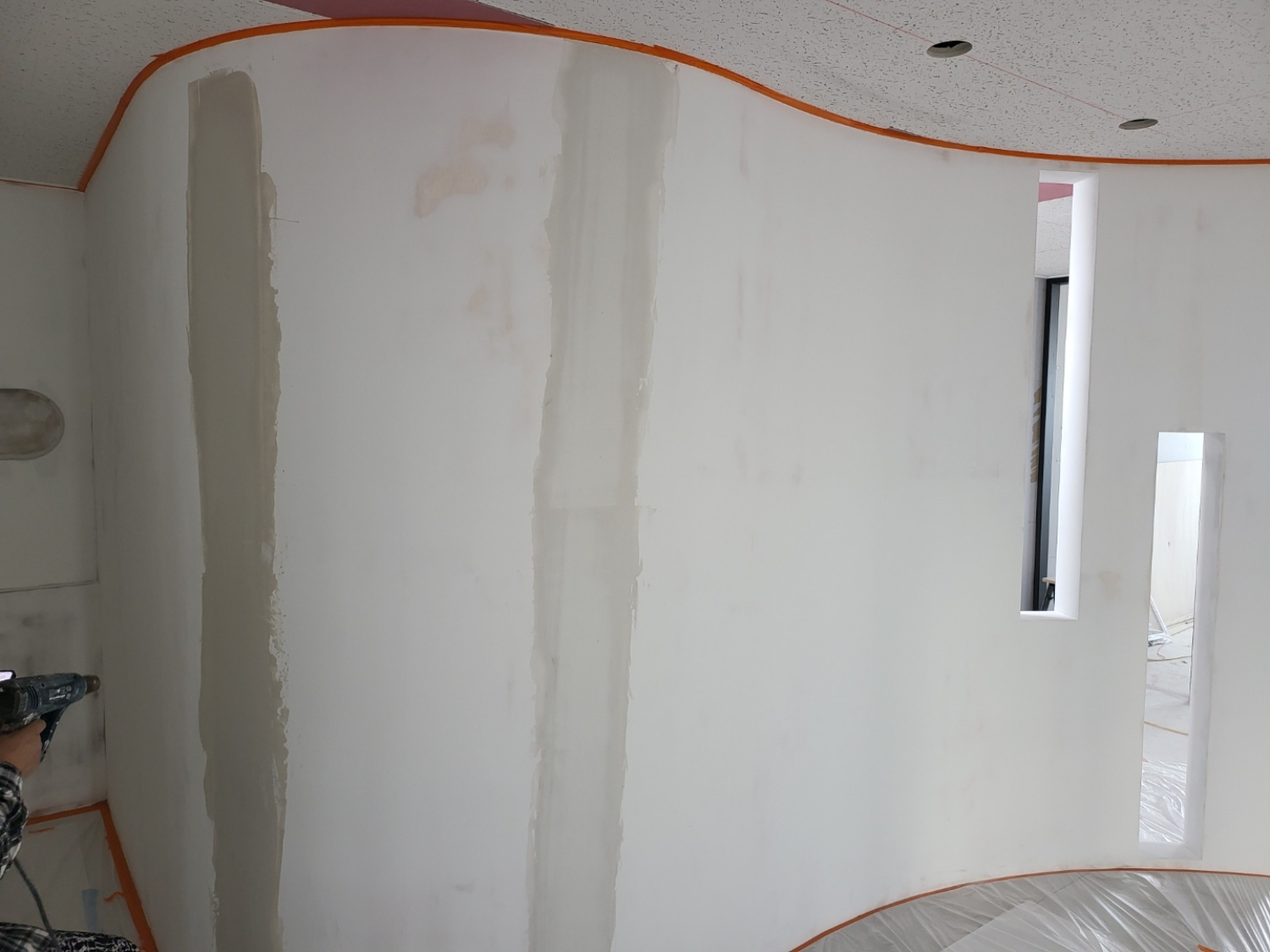 복도는 목공 작업으로 라운드 타입의 가벽을